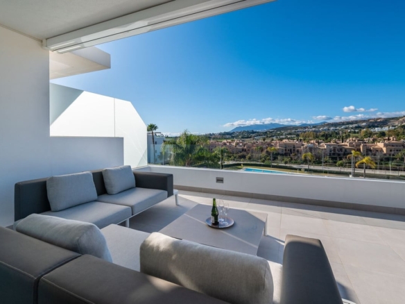 Discover this exceptional 189m2 apartment located on the second floor of the sought-after residential complex Cataleya Phase ii, situated in Estepona’s prestigious New Golden Mile. This corner unit offers enhanced privacy and panoramic views, just steps away from the renowned Atalaya golf course and only a short drive to Guadalmina beach and Puerto Banus.