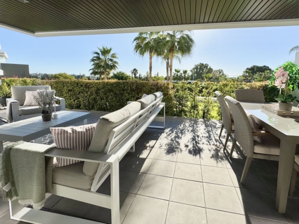 This superb, modern ground-floor apartment is located in Marques de Guadalmina, a sought-after gated community just 7 minutes from Puerto Banus. The apartment features a huge exterior terrace and a large U-shaped private garden surrounding the property, offering an ideal family lifestyle.