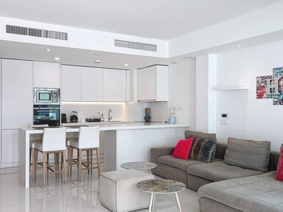 The apartment consists of a nice entrance hall , 3 spacious bedrooms all with built-in wardrobes and 2 bathrooms , 1 with rain shower , 1 with a bathtub , both with a double sink. The master bedroom overlooks the garden and has an ensuite bathroom.