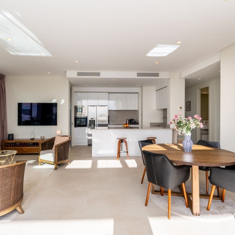 Split bedroom design, ideal for guests. Each of the 3-bedrooms with ensuite bath and direct terrace access. Separate guest bathroom ensuring comfort for family and guests alike.