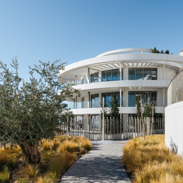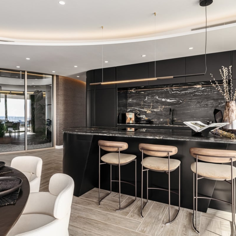Spanning 663 m2 with a private plot of 192 m2, this ground floor apartment features an open-plan layout, floor-to-ceiling windows, and glass doors offering stunning views. it includes a spacious living room, large terraces, a sleek kitchen, 3 bedroom suites, a guest toilet, storage room, and 2 parking spaces. The 232 m2 terrace is perfect for enjoying sea vistas and Mediterranean sunsets.