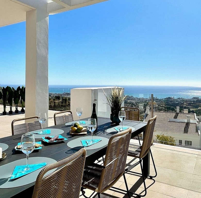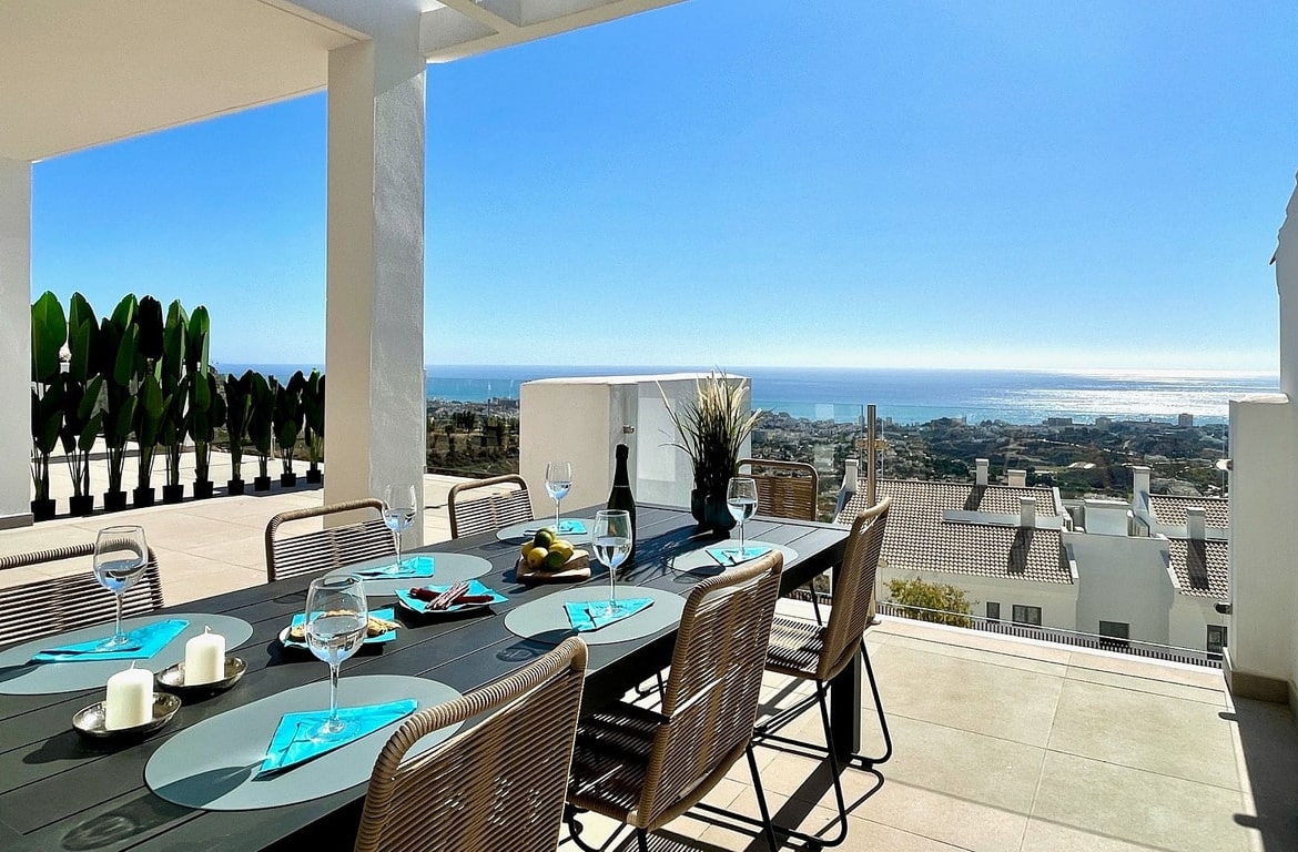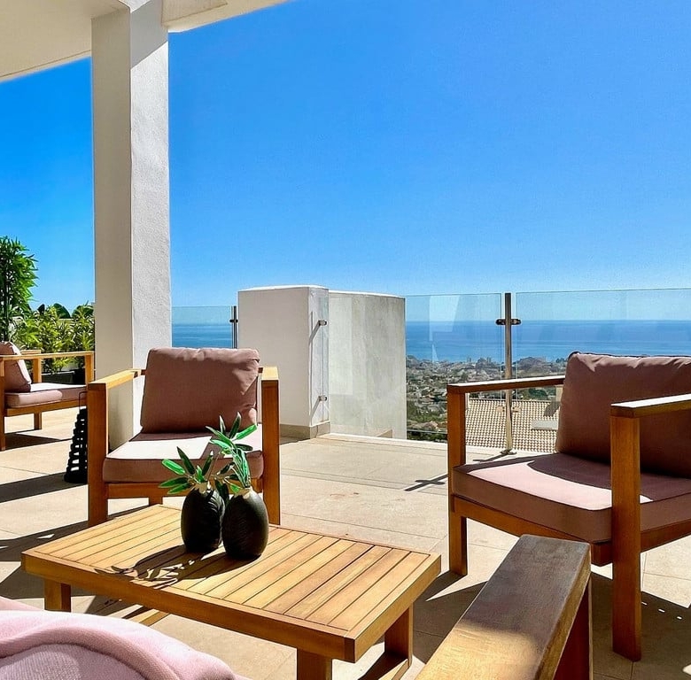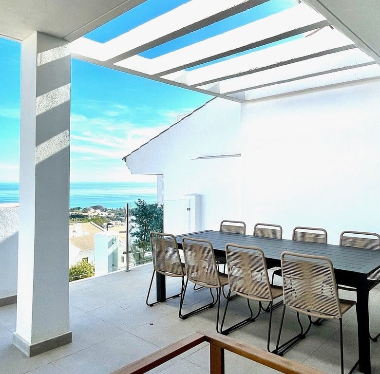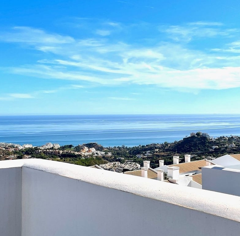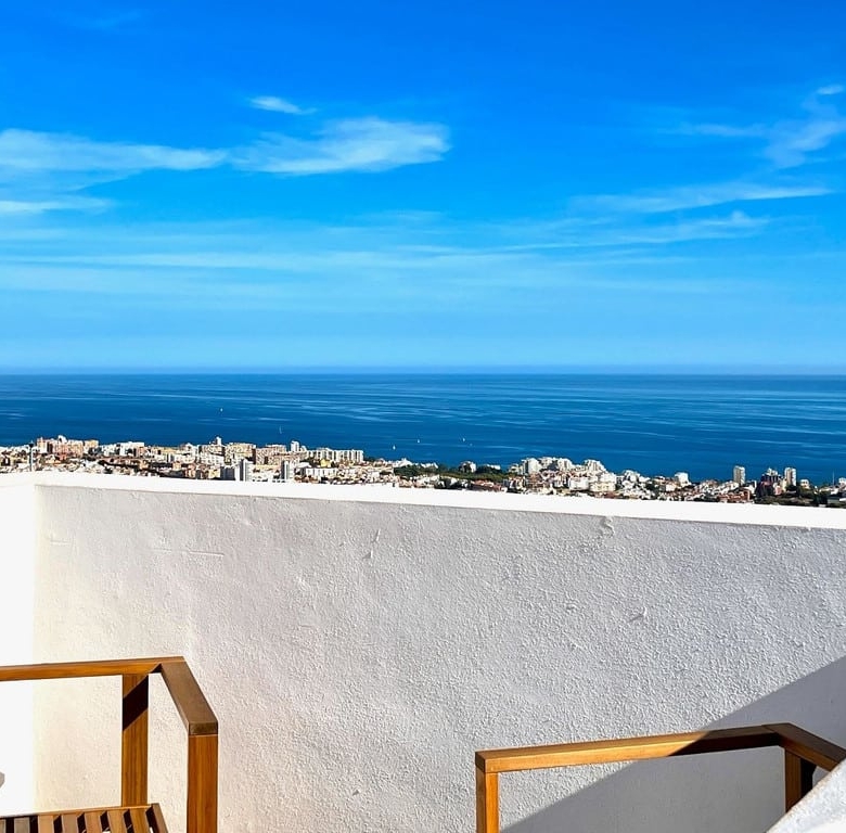 This modern duplex penthouse offers breathtaking sea views and an exceptional location in Benalmadena, just a short drive from the beach and the charming town center of Benalmadena Pueblo. The property features an open-plan living room with a fully equipped kitchen, three bedrooms, two bathrooms, and ample terrace space on both the main floor and the top floor, accessible from one of the bedrooms. The rooftop terrace provides stunning panoramic views of the surrounding area and the sea, complete with a private jacuzzi and plenty of space for sunbathing. inside, the apartment boasts ceramic tile flooring throughout, as well as hot and cold air conditioning, underfloor heating, smoke detectors, and alarm systems. The bedrooms are fitted with built-in wardrobes for added convenience. Situated in a well-maintained residential complex with beautiful communal areas, such as a stunning communal pool, gym, paddle tennis courts, jacuzzi, whirlpool, sauna, a multipurpose room with a movie theatre, and a children’s play area. The purchase price includes two underground parking spaces and a storage room. Located in Benalmadena, the property close to the the center of Benalmadena Pueblo, known for its variety of restaurants and bars, and only a short drive from the area’s best beaches. With easy access to the coastal road and highway, Malaga Airport is just a 15-minute drive away. This apartment is perfect as a second residence, holiday home, or investment property, offering excellent long-term rental potential.