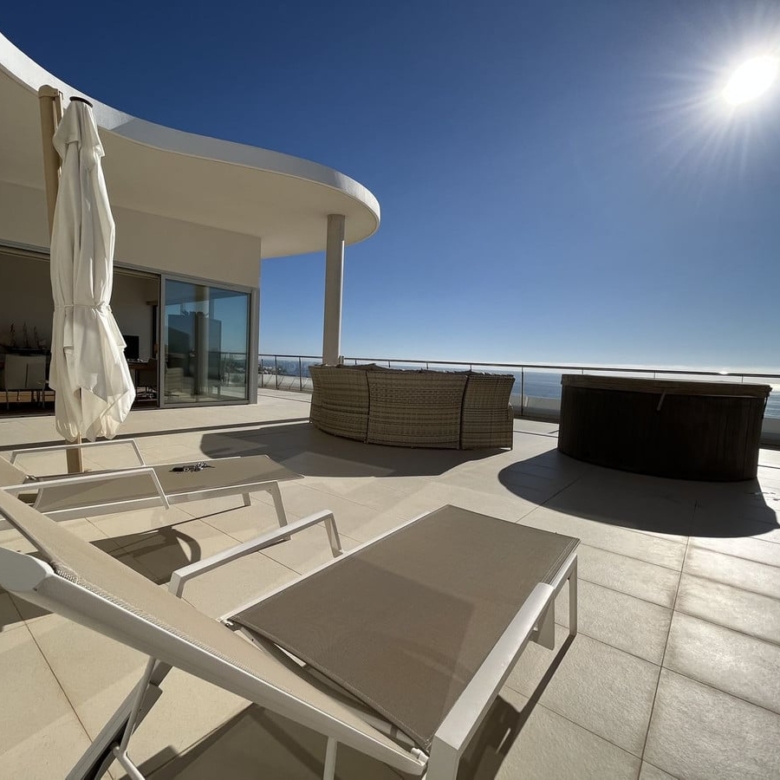 The house has an outdoor spa and is in very good condition, excellent construction qualities. The property stands out for its perfect sea views from the terrace, living room, kitchen and bedrooms. it also has 100% privacy due to its overall height, the best height in the project.