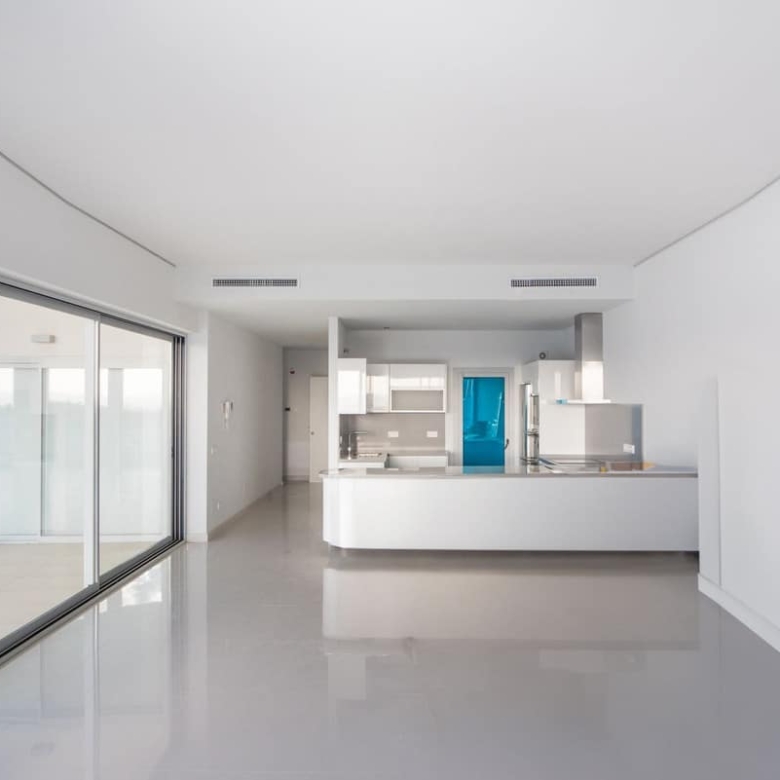 The property is delivered unfurnished and includes two parking spaces and a large storage room in the price.