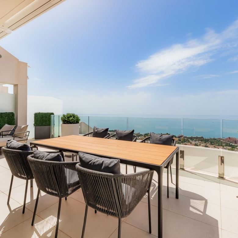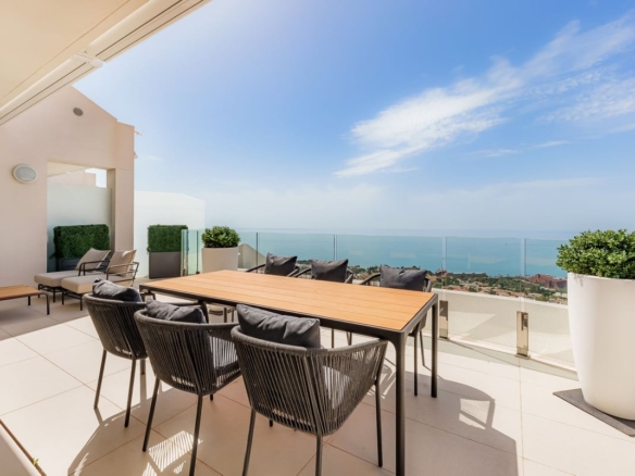 Discover the duplex corner penthouse of your dreams with panoramic views of the sea, the the port of Fuengirola and all the way to Gibraltar.