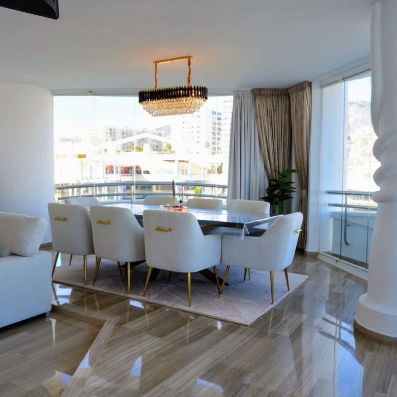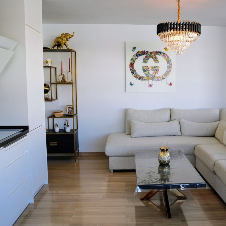 This exclusive property offers a large area that integrates the very bright living room with the modern fully equipped kitchen, also thanks to its Lumon enclosure on the terrace that surrounds it you can enjoy clarity and impressive views.