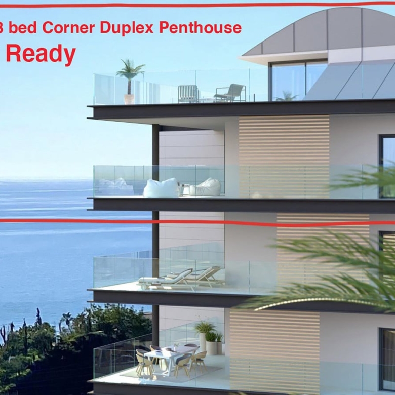This stunning corner duplex penthouse for sale is not only located in one of the best / newest developments in the area, but also the actual unit is probably the best position in the whole development with breathtaking 180º panoramic sea / beach views.