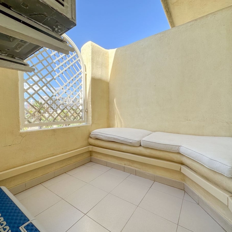 The upper floor of this duplex penthouse has a spacious master bedroom with en-suite bathroom and another covered terrace with panoramic views over the port and the sea. Additionally, the building has an elevator that takes you direct to this the 4th floor. From this floor you have as well your own private access to the communal rooftop pool. This pool is heated and can be used 365 days a year, 24 hours a day.