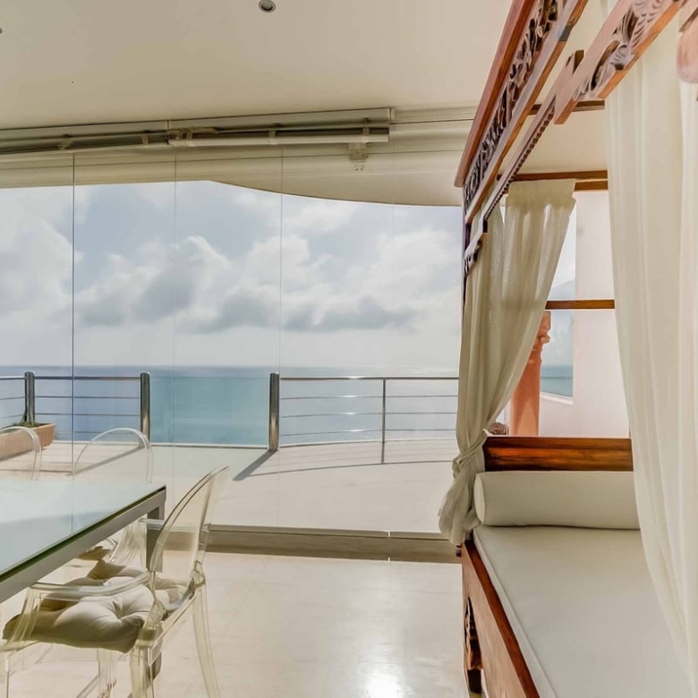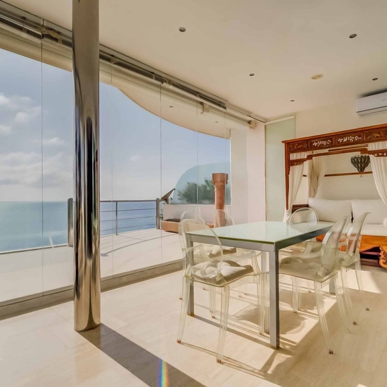 Enjoy the terrace year-round with sleek glass curtains framing the view. The largest terrace is your personal sanctuary, offering what may be the most stunning panoramic views on the coast while enjoying the indoor or outdoor jacuzzi in total privacy.