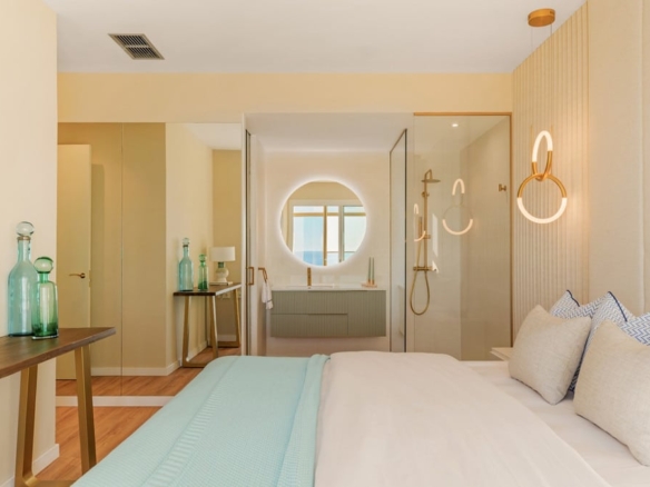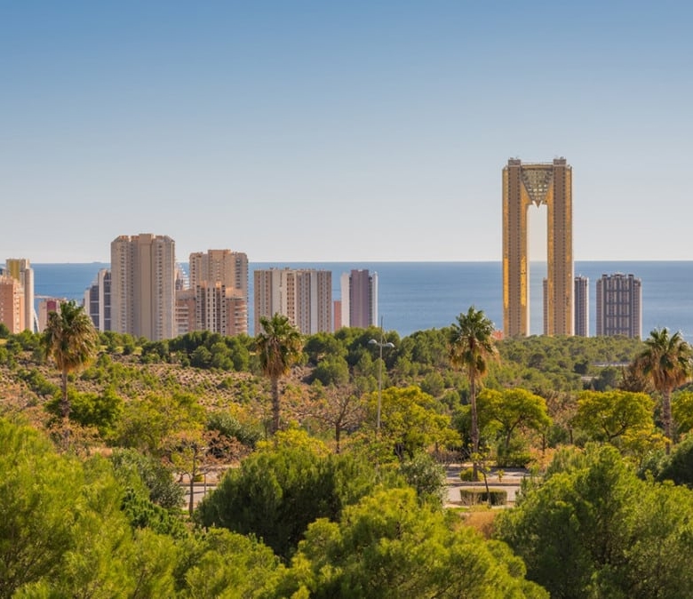 Located in the majestic intempo building, the tallest residential skyscraper in Spain and one of the tallest in the European Union, it is distinguished by its exclusivity. The golden facade and the impressive diamond at the top enhance its splendor, harmonizing with the beauty of Benidorm.