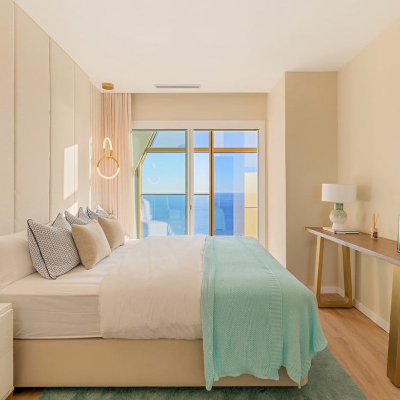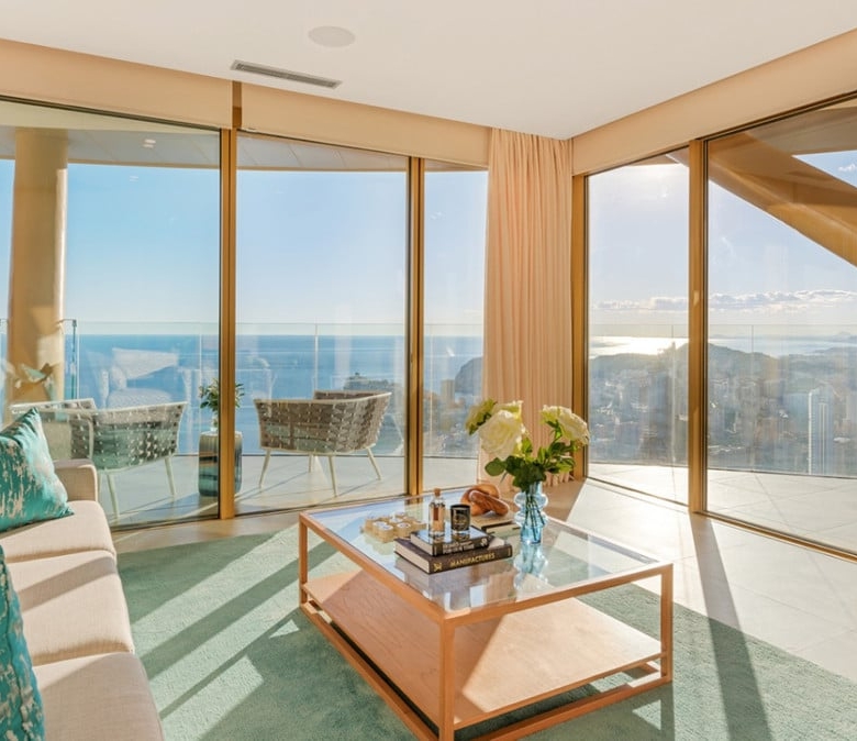 Located in the majestic intempo building, the tallest residential skyscraper in Spain and one of the tallest in the European Union, it is distinguished by its exclusivity. The golden facade and the impressive diamond at the top enhance its splendor, harmonizing with the beauty of Benidorm.