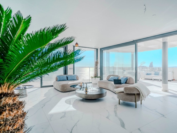 A standout feature of this residence is the expansive private terrace, where a private jacuzzi invites you to unwind while taking in the uninterrupted frontal views of the sea. This outdoor space offers the perfect setting to relax and enjoy the stunning coastal scenery.