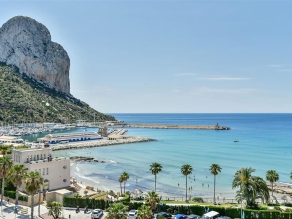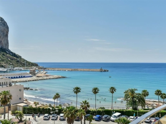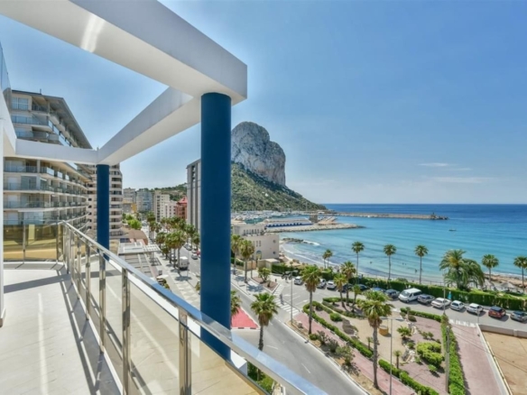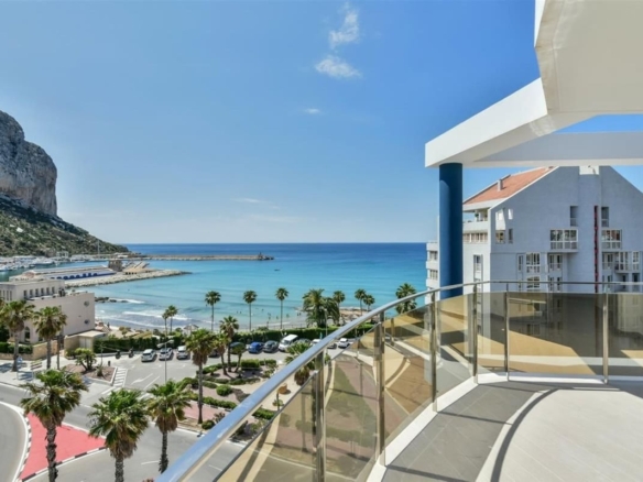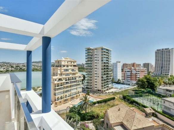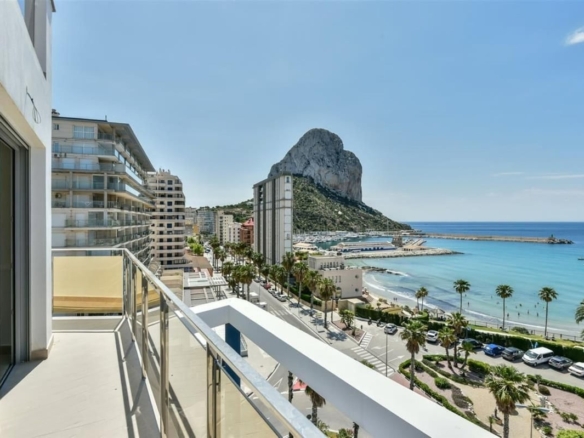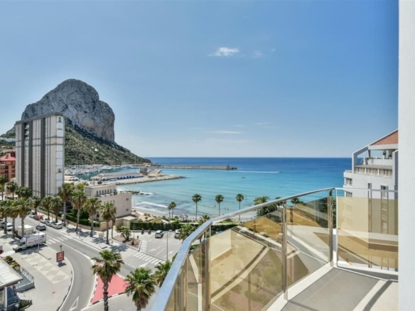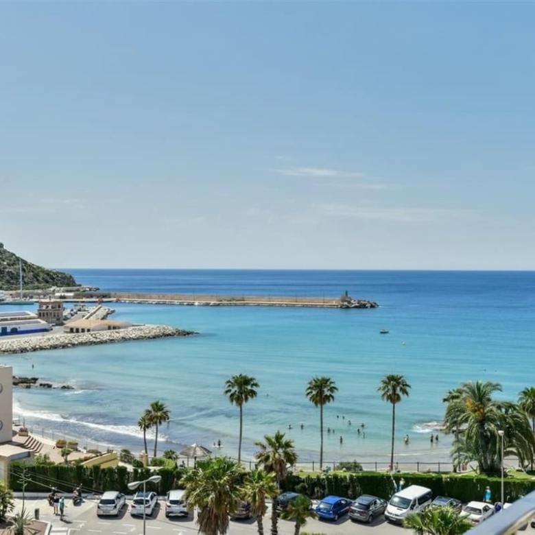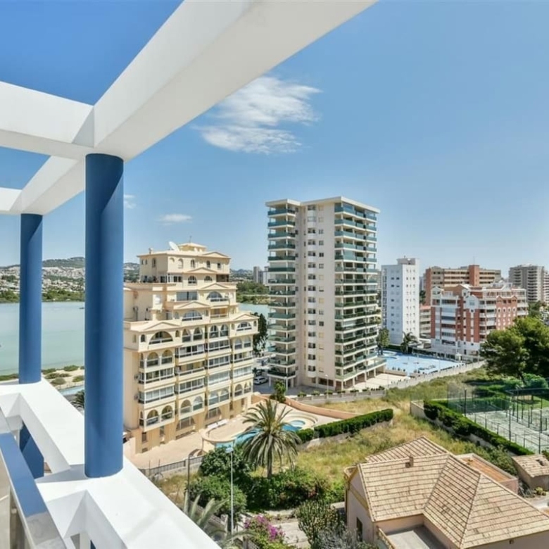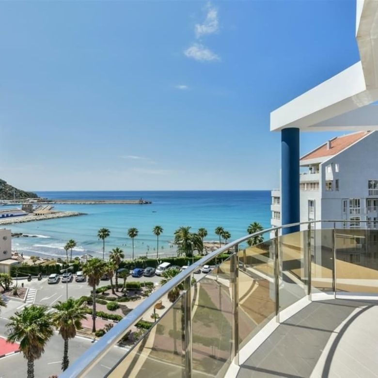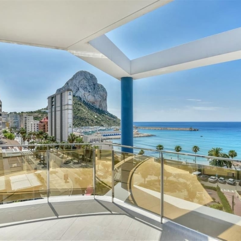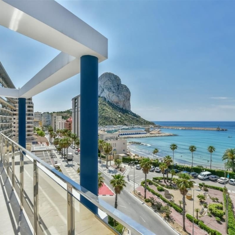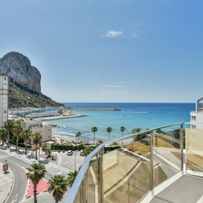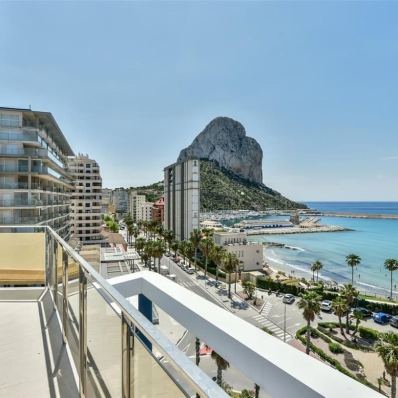 Spectacular new construction triplex penthouse with panoramic sea views 12m from the Arenal Bol beach in Calpe. The attic has an area of 238m2, distributed between floor 7 of 123m2, floor 8 of 69m2 and floor 9 of 52m2. The first floor of the attic is distributed between a hall, living room with access to the large terrace, open kitchen, 1 bedroom and 1 bathroom. The first floor of the attic is distributed between a hall, living room with access to the large terrace, open kitchen, 1 bedroom and 1 bathroom. The third floor of the attic is occupied with a covered terrace of 24.80m2, a covered terrace of 24.80m2, an open terrace of 21.20m2, barbecue area. The building has been built in 2019. The construction and finishes are of high quality. it has a communal pool and covered parking.