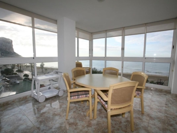 Luxurious apartment with stunning views over the sea and the coast located in the first line of the beach in Calpe is put up for sale. The house is built using high quality construction materials and modern technologies. Bright and spacious apartment of 140 sq. m consists of three bedrooms, two bathrooms, large detached fully equipped kitchen and exquisite living room with dining area. All the rooms are decorated and furnished with great taste. Please, contact us for further information.