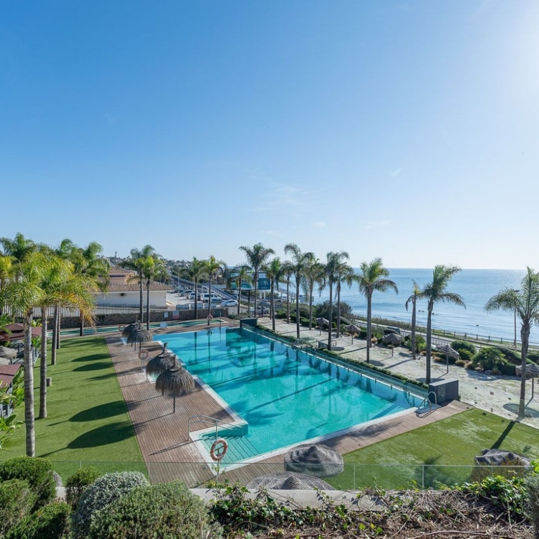 Amazing apartment 50m from the beach located in Mijas Costa close to La Cala de Mijas. The apartment consists of three bedrooms and two bathrooms, the main living area leads out to a huge private terrace. Located in El Faro Mijas costa situated in between Fuengirola and La Cala de Mijas with various bars, restaurants and supermarkets within walking distance.