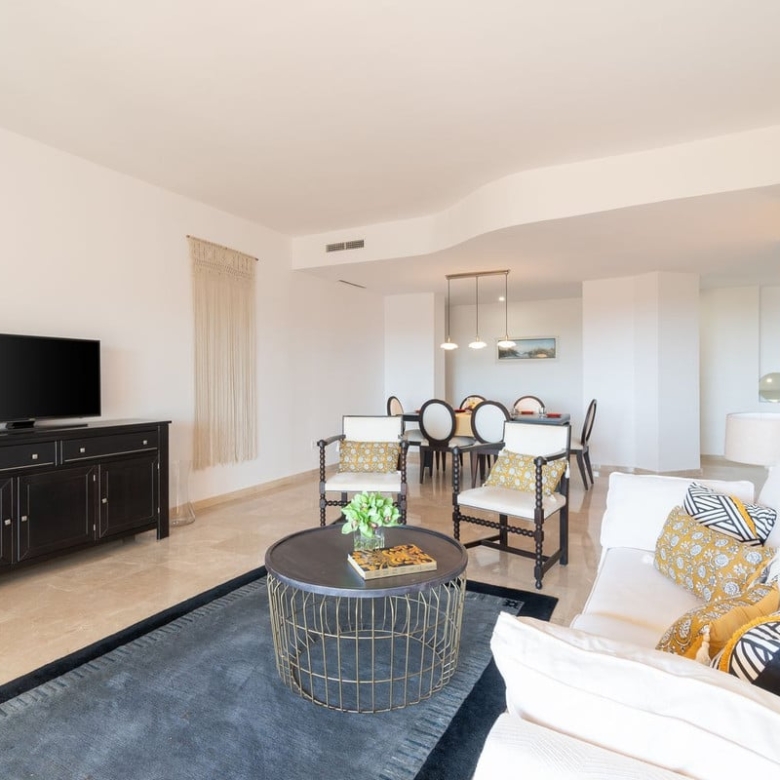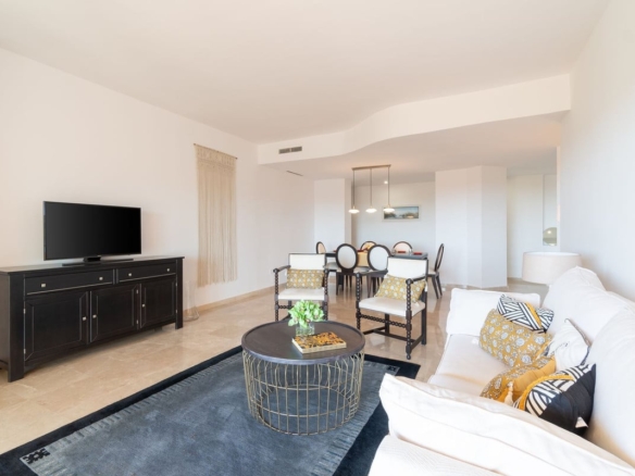 The apartment is very spacious and bright, it consists of master bedroom with bathroom on suite, 2 guests bedrooms and 2 bathrooms, living room with dining area and fully equipped kitchen.