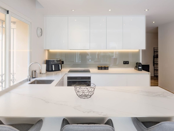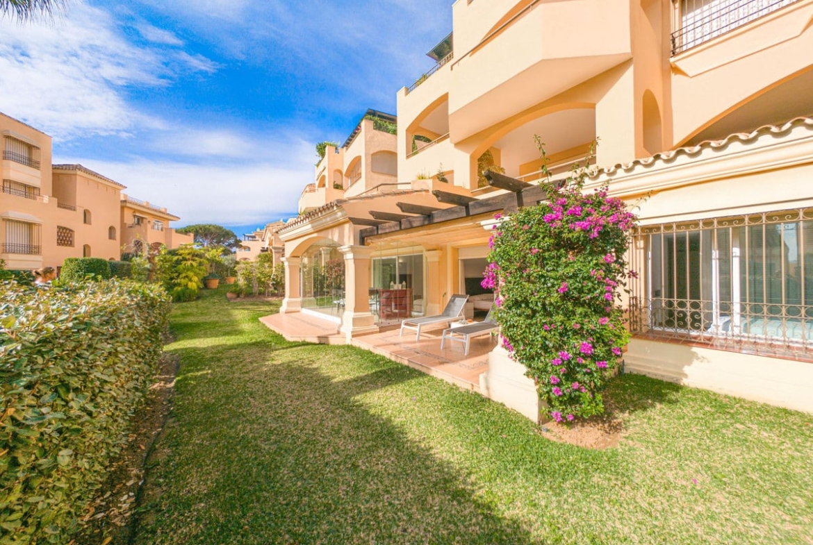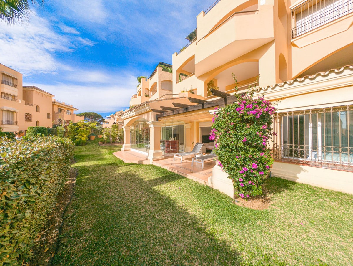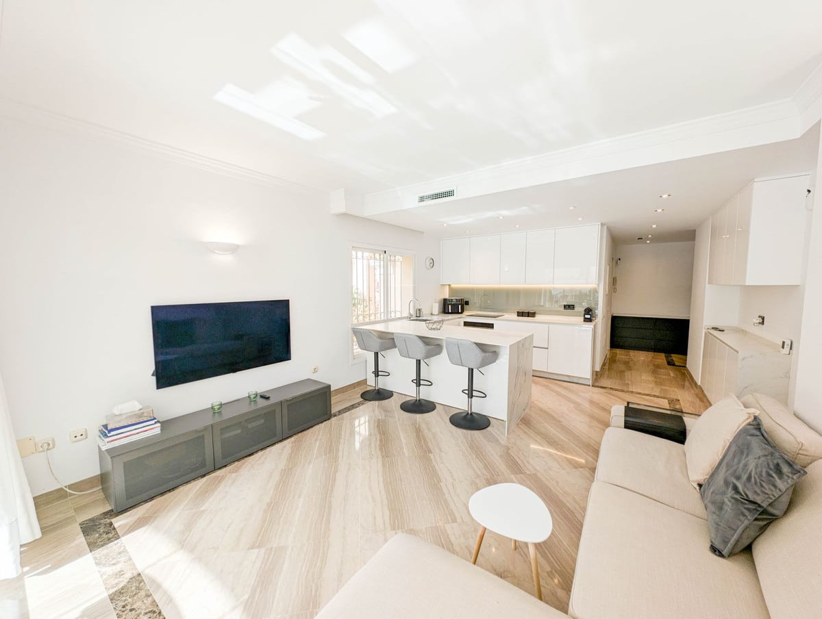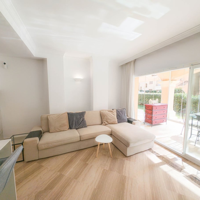 Discover luxury living in this absolutely stunning south-facing garden apartment, nestled in a highly sought-after development. This property features a seamless transition to a spacious 3-bedroom layout, complemented by a brand-new open-plan kitchen equipped with top-quality Siemens appliances. The dining area is enhanced with elegant glass curtains, creating a beautiful and versatile space for year-round enjoyment. Residents can indulge in the complex’s extensive amenities, including four large swimming pools, two children’s pools, and exquisitely maintained gardens that underscore the development’s superior build quality. Perfectly positioned, the apartment is just a short walk from Elviria’s renowned selection of fine dining, vibrant bars, and pristine beaches. An underground parking space is included, adding convenience and value to this exquisite home.