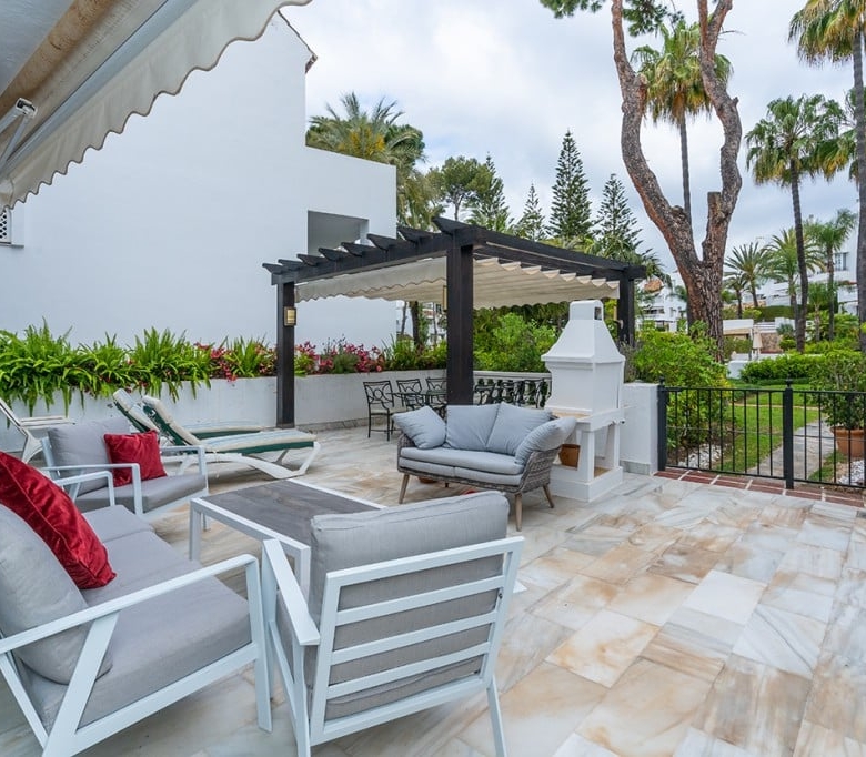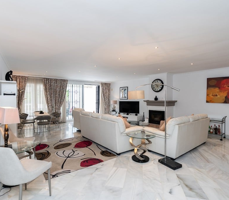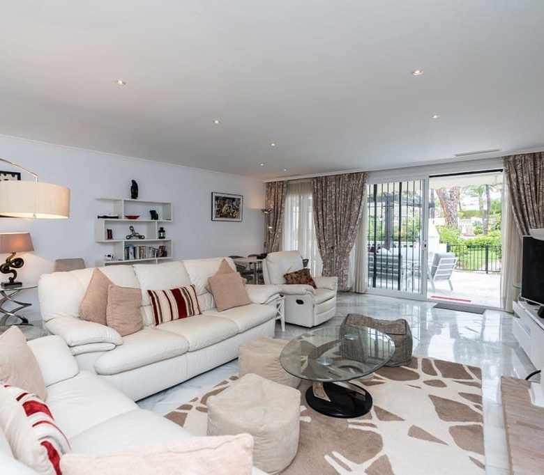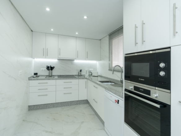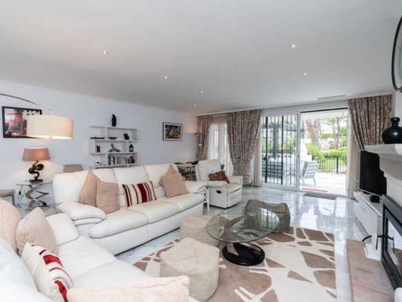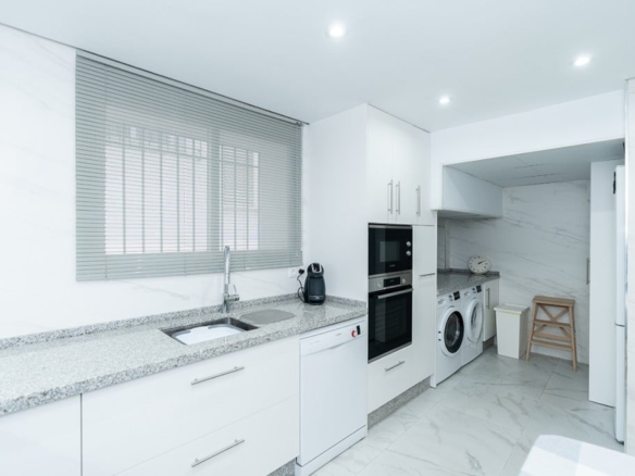 Stunning ground floor apartment in White Pearl Beach offering three bedrooms, three bathrooms, very large living room with fireplace, fully equipped modern kitchen and beautiful terrace with views to the green areas and the pool of the community. Marble floors, AC hot and cold, storage room and underground parking space included in the price. The complex offers a large pool, a heated pool and 24hrs. security on site. ideal as a family home or as a holiday apartment to enjoy or to rent out. All local amenities are a short walk away.