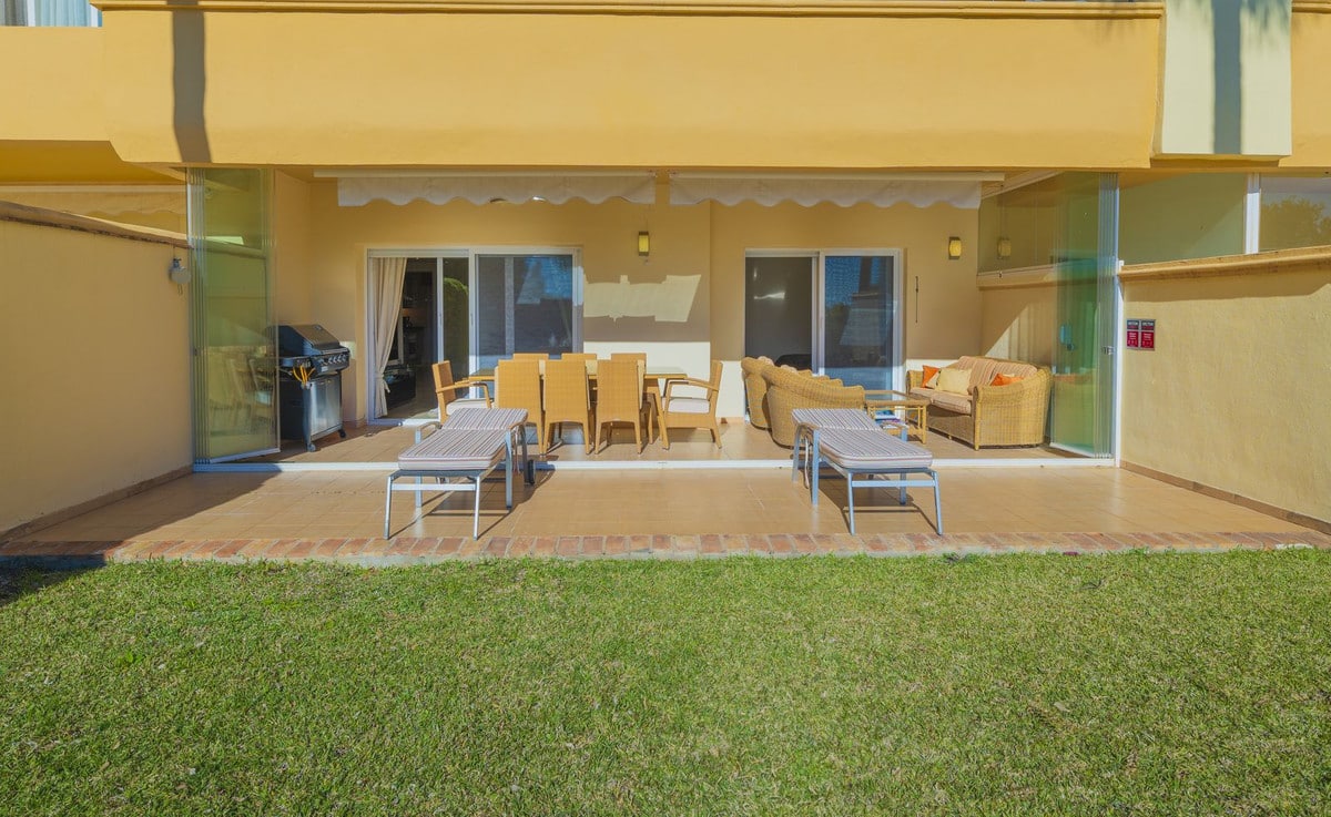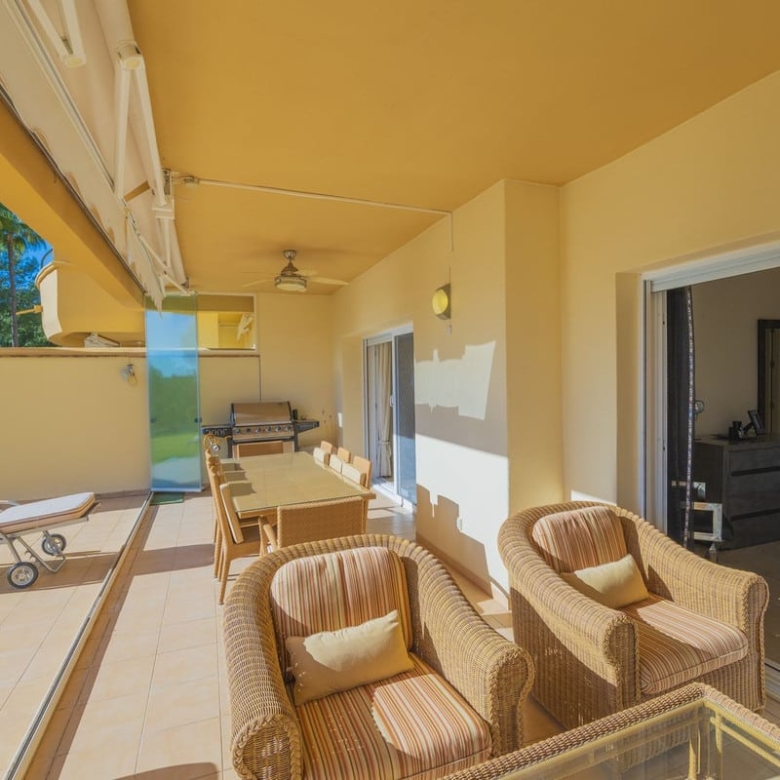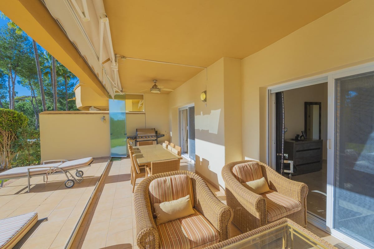 Welcome to a home designed for well-being and enjoyment located in Elviria Hills. This home belongs to a first-class complex, which has, among other notable features, a private 9-hole par 3 golf course, swimming pools, two clay tennis courts, a charming lake at the foot of the renowned restaurant El Lago, which appears in the Michelin Guide, also within the boundaries of the development, as well as large and well-kept communal green areas. The apartment has three bedrooms, a guest toilet at the entrance hall and two bathrooms, one of them en suite, a fully equipped kitchen and laundry room, a spacious living room with access to a 47m2 south facing terrace with no view blocking buildings at all and open views to the green areas, sea, golf and the lake. The property comprises underground parking and a storage room. Besides, having no stairs whatsoever to access the ground floor, or to reach the swimming pool, gardens, outdoor parking and having a lift to get to the underground private parking place entitles the dwelling as convenient for people with mobility challenges. This wonderful development boasts top quality buildings, with excellent materials and construction features, spacious rooms, in a natural setting surrounded by vegetation, combining privacy and discretion with the aforementioned range of options for leisure time. Furthermore, due to its location, the apartment is at a short distance from the commercial centre of Elviria, with its varied gastronomic offer, leisure facilities, supermarkets, pharmacies, schools, and all the services that may be needed if one chooses this property as a first home. All these characteristics also make the property an example of a holiday home : without forgetting its enormous rental potential. Come and visit, we assure you that this house will not disappoint you.