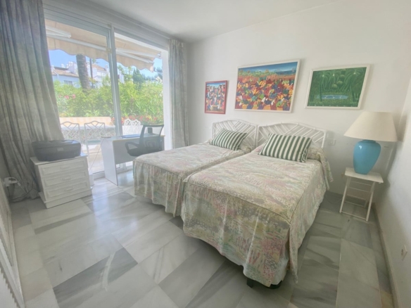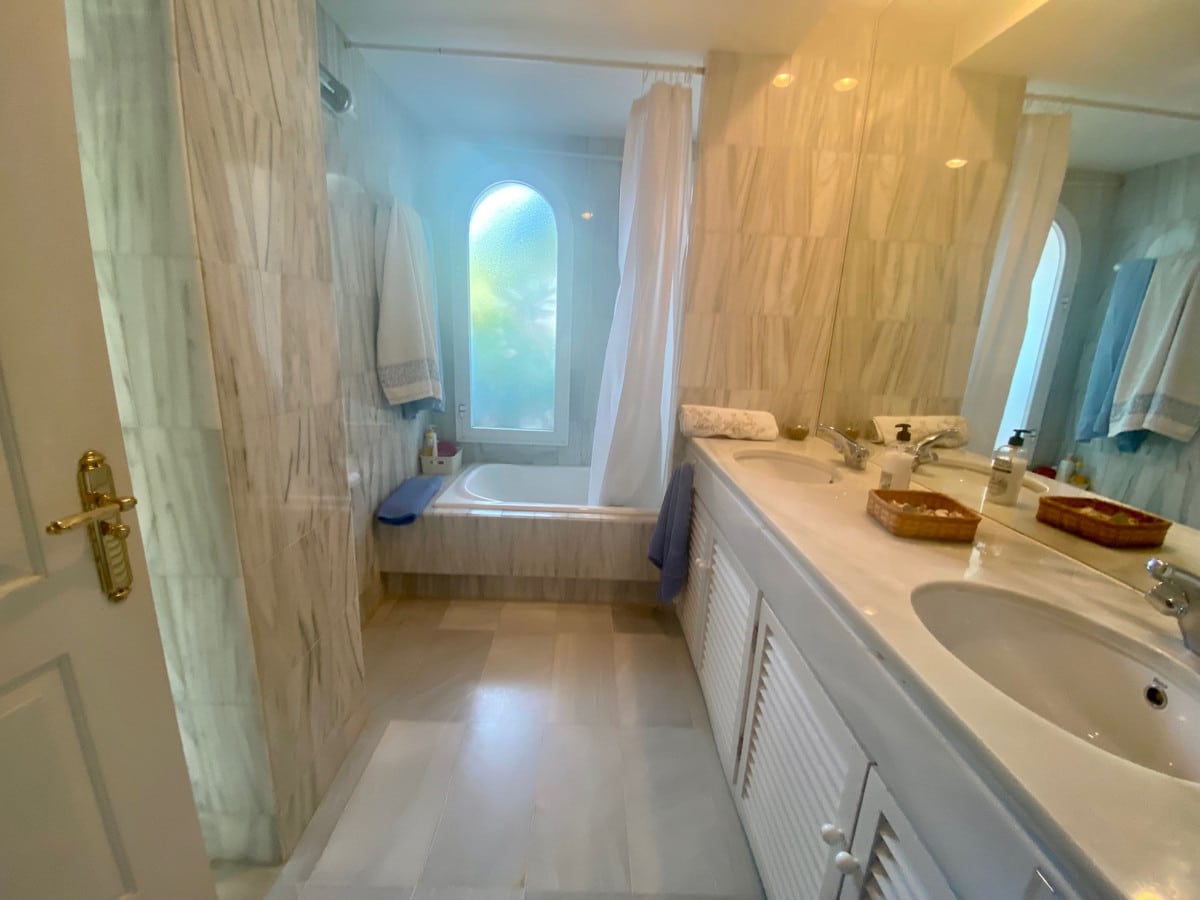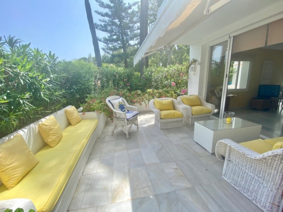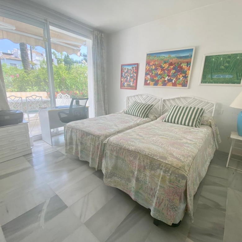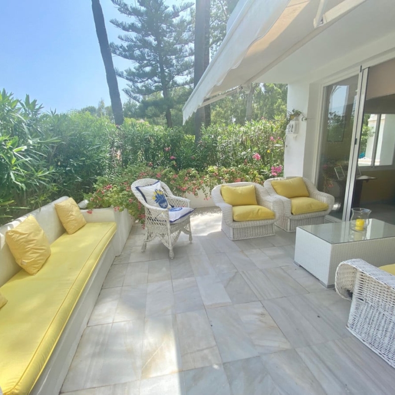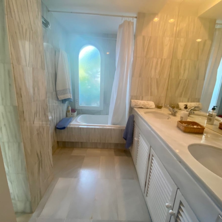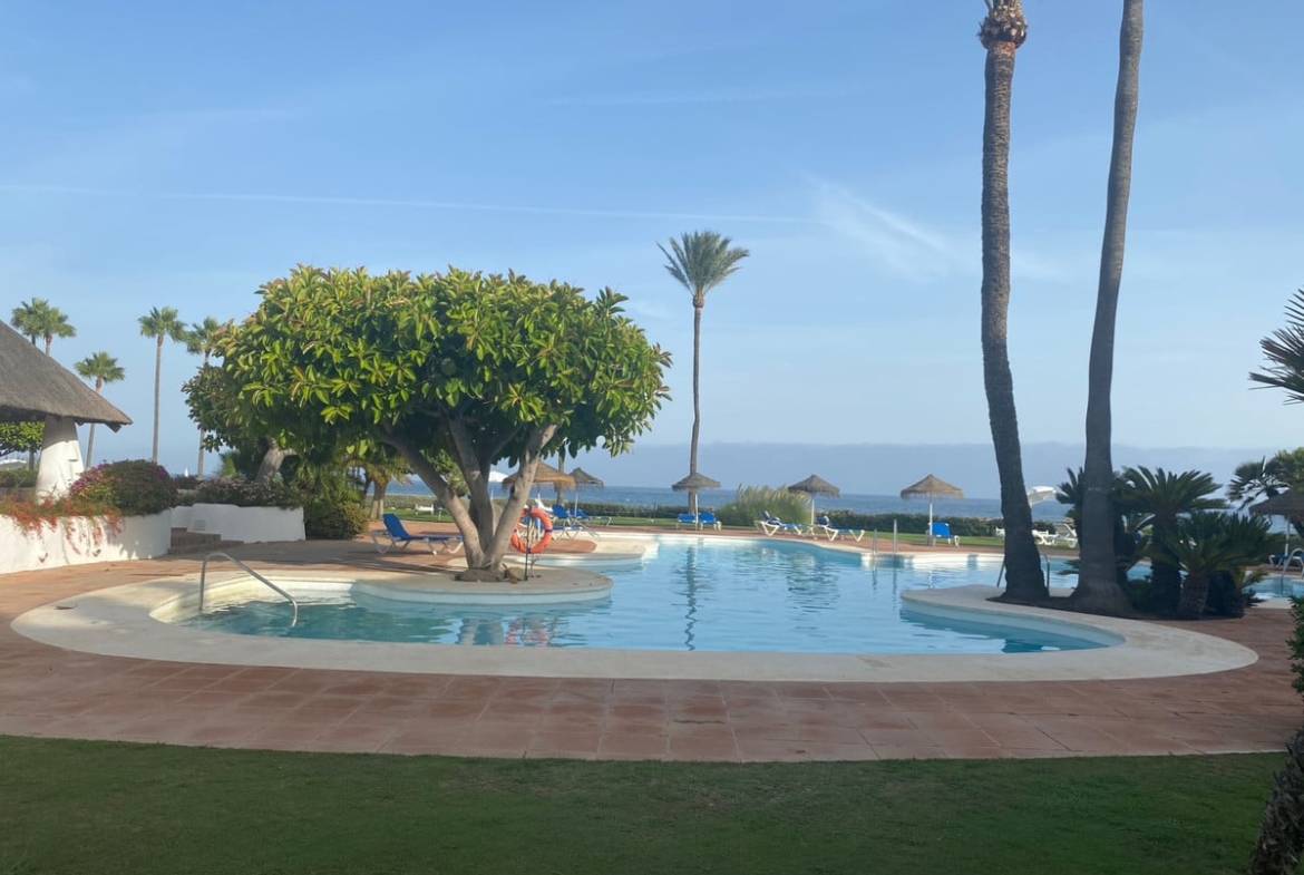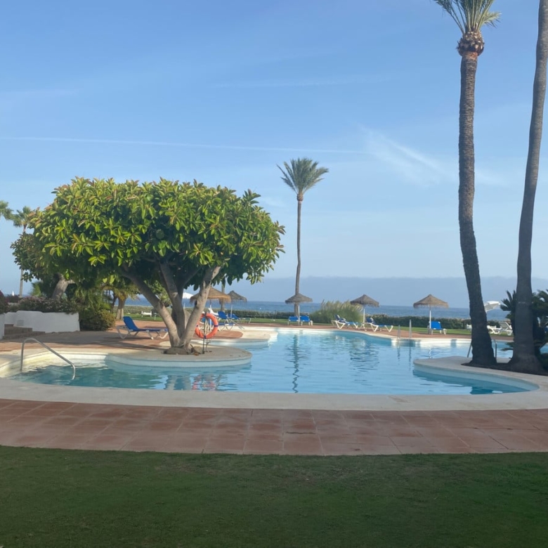 This 3 bedrooms ground-floor apartment is situated in Alcazaba Beach, a beachfront complex on the New Golden Mile at walking distance to Estepona. The apartment consists of 3 bedrooms 3 bathrooms, lounge with access to 2 big terraces. The apartment is southwest-facing and has sun all day. The complex has 7 swimming pools, gardens, tennis, paddle, restaurant, children playground, and 24 hours security.