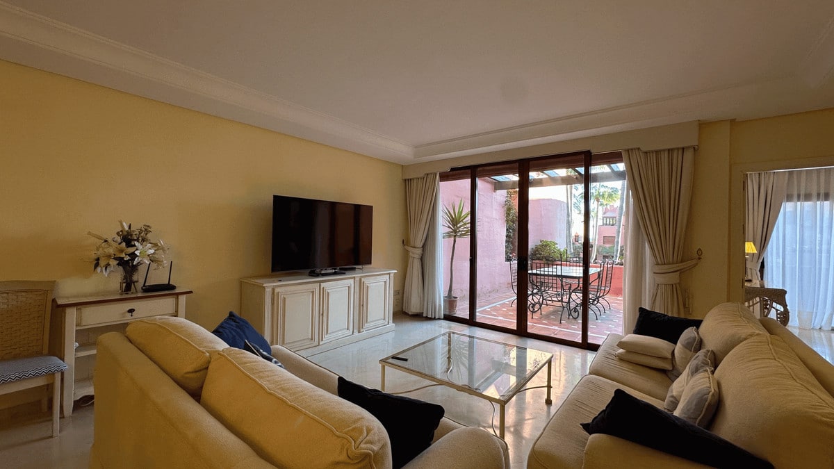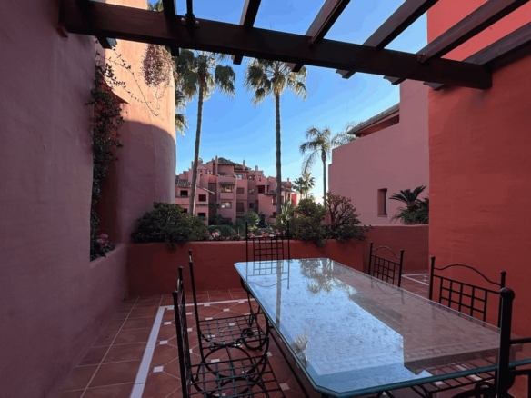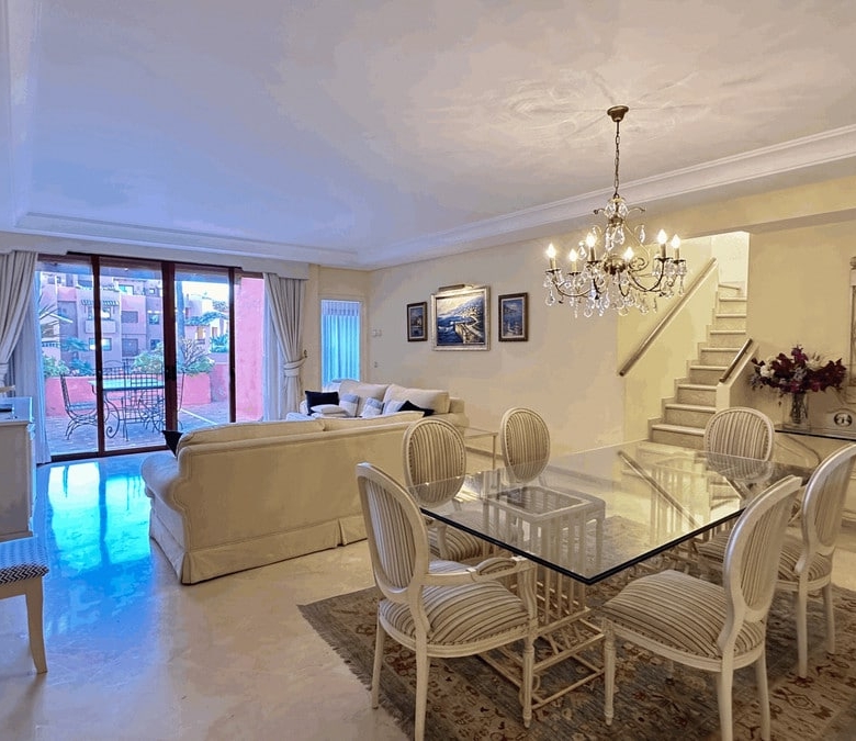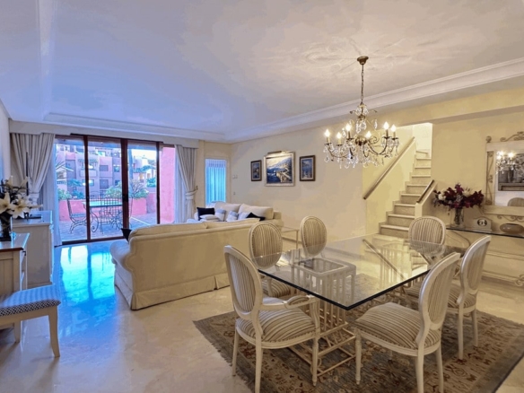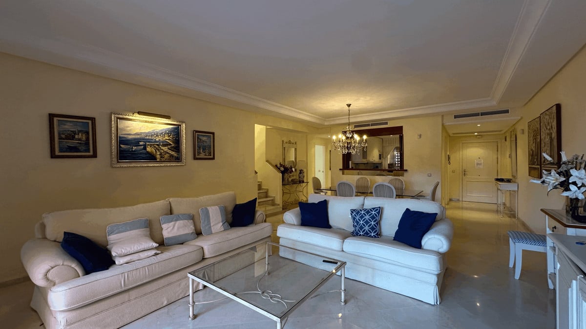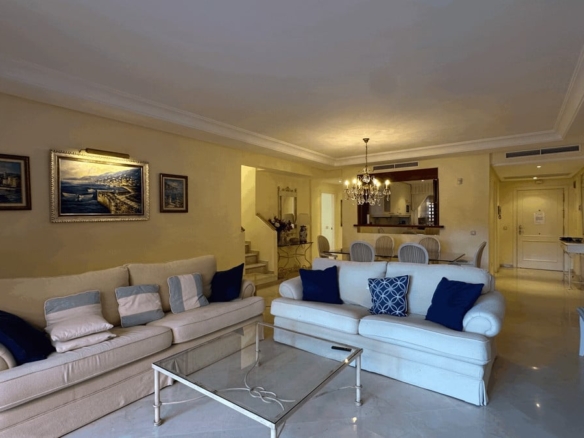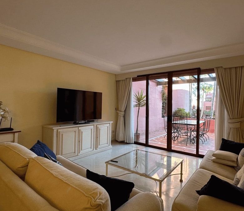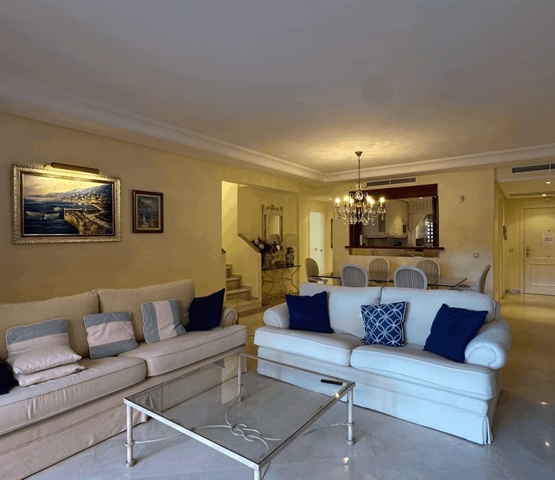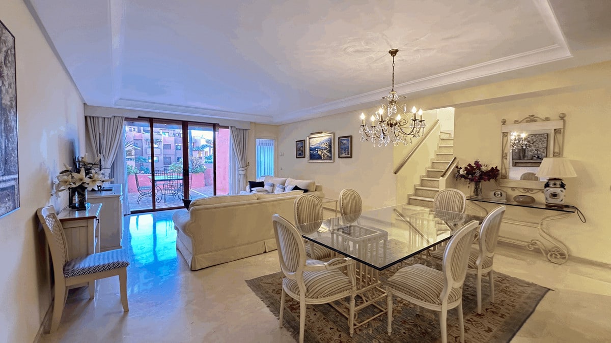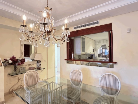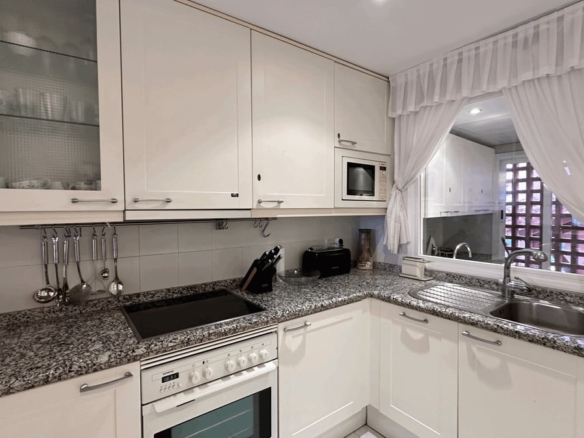 Further enhancing the appeal are desirable touches such as air conditioning, electric blinds, double glazing, Wi-Fi and Fibre optic internet, fitted wardrobes, and a walk-in closet. Security shutters, a security entrance, and a doorman add to the comprehensive security measures. The property is in excellent condition, making it an ideal choice for those seeking a luxurious yet practical home by the beach. Pets are permitted, and the property’s proximity to transport links ensures easy connectivity, completing its appeal as a distinguished residence in one of Estepona’s most sought-after locations.