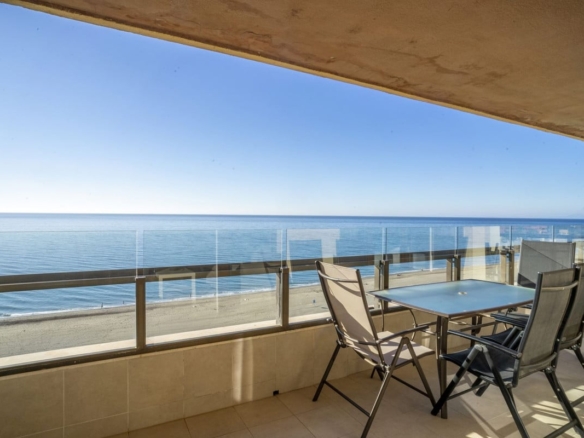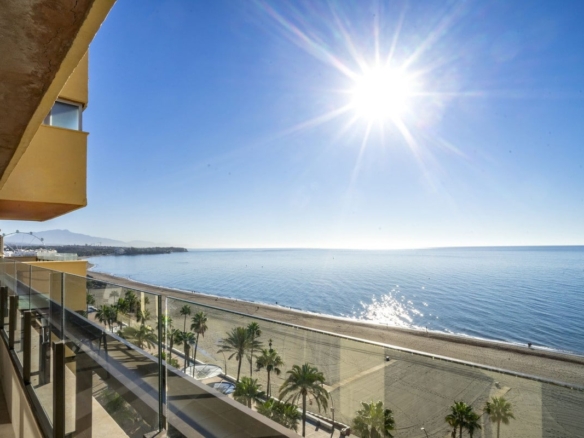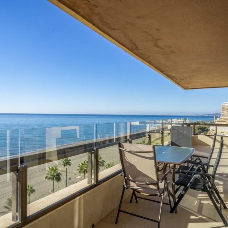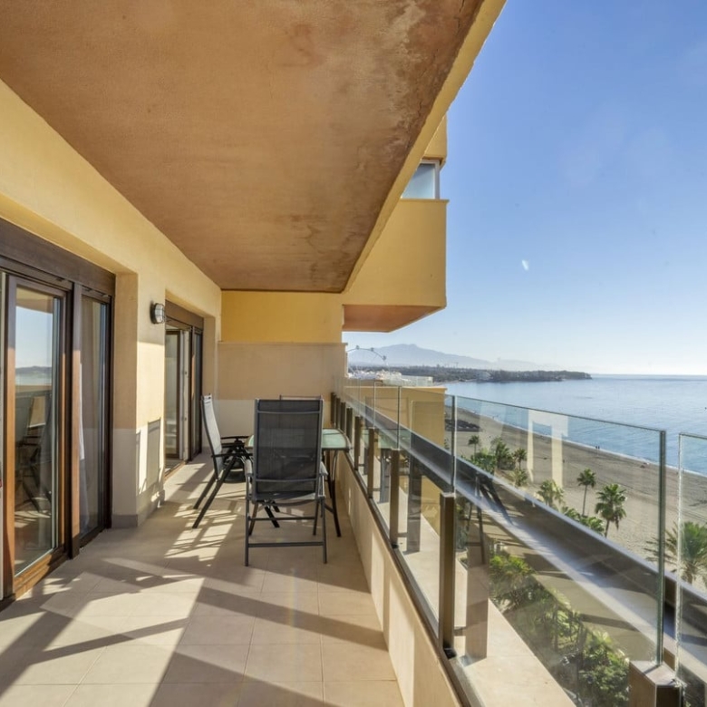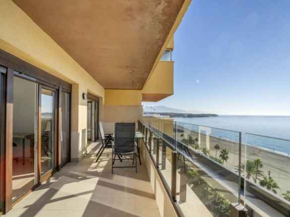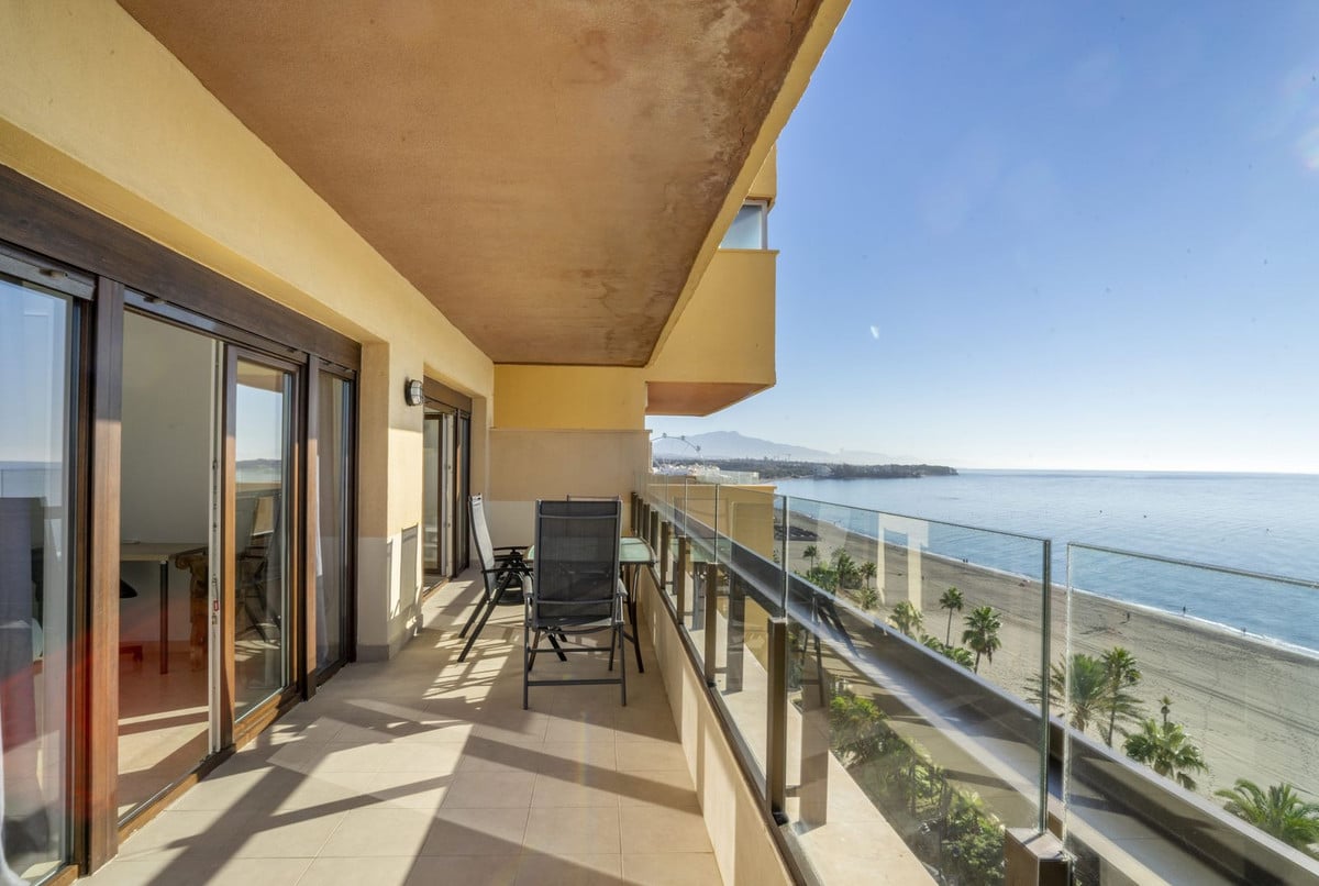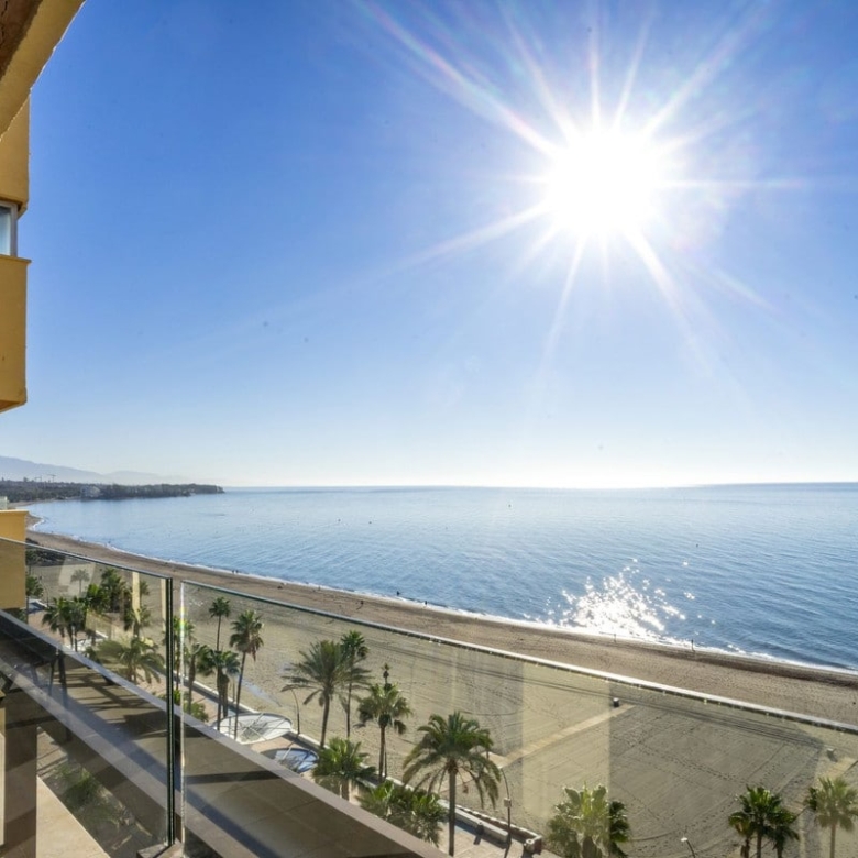 This exclusive frontline beach flat is located in a privileged location in Estepona, Malaga. it is a flat with spectacular and panoramic sea views. From here, you will be able to enjoy the beauty of the ocean and contemplate the beach of La Rada, which is right in front. You will also be within walking distance of the marina and the old town and city centre. This property has been completely refurbished, with practically new bathrooms and kitchen, as well as the floors and tiling. The electrical, satellite TV, plumbing and other installations have also been renovated. The flat has three bedrooms, all of them spacious and bright, perfect for rest and relaxation. The two main bathrooms have also been renovated and offer comfort and style.