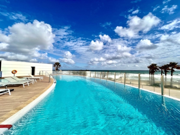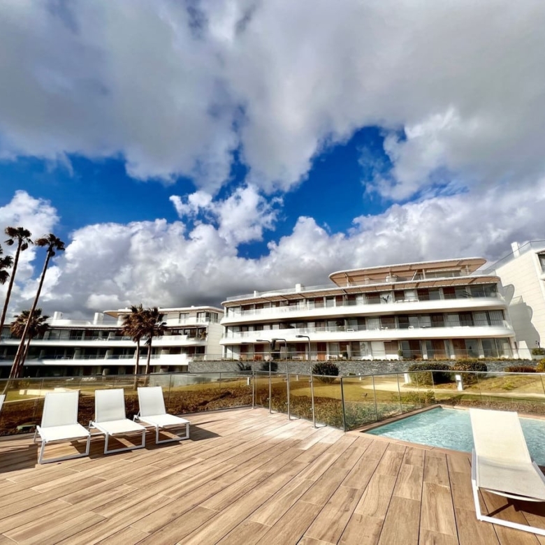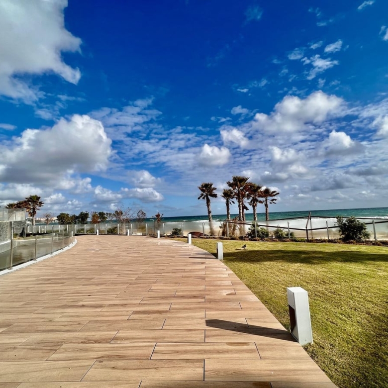 Exquisite beachfront apartment nestled within a contemporary luxury residential enclave in Estepona, just a 5-minute drive from the city center.