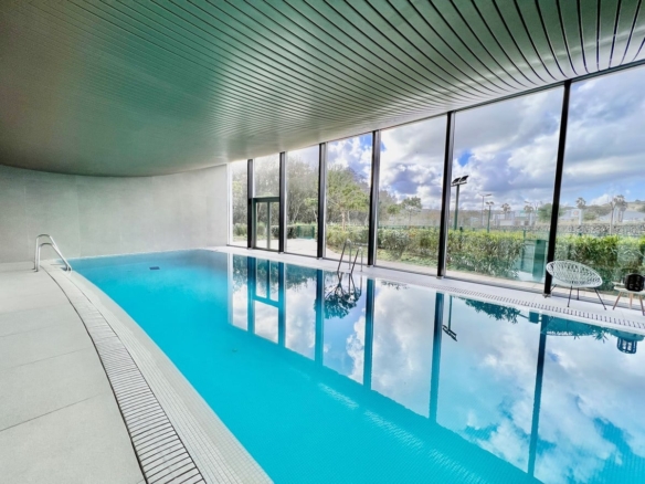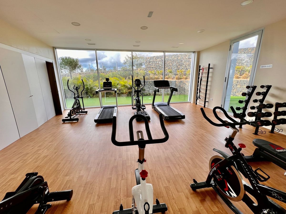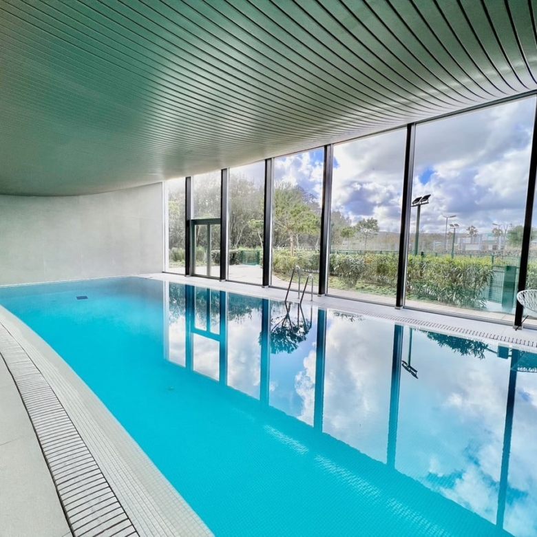 This avant-garde complex spans nearly 10,000 square meters, boasting expansive garden areas, two outdoor infinity pools, an indoor heated pool, gym, spa, paddle tennis court, and a co-working space, all within a secure, 24-hour guarded environment.