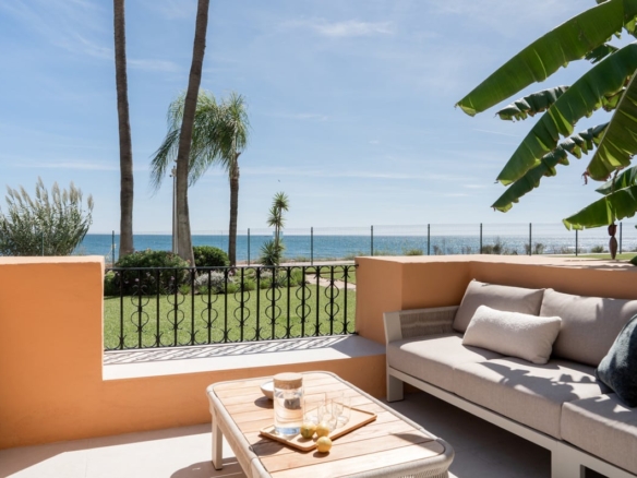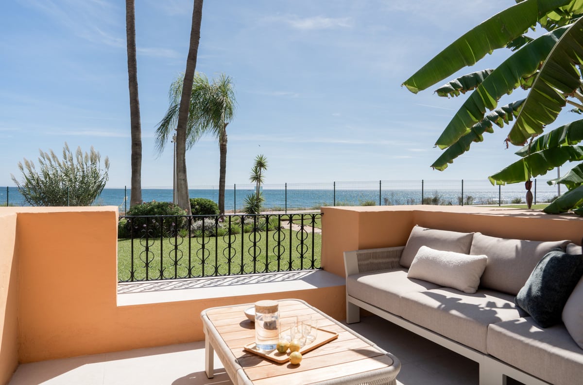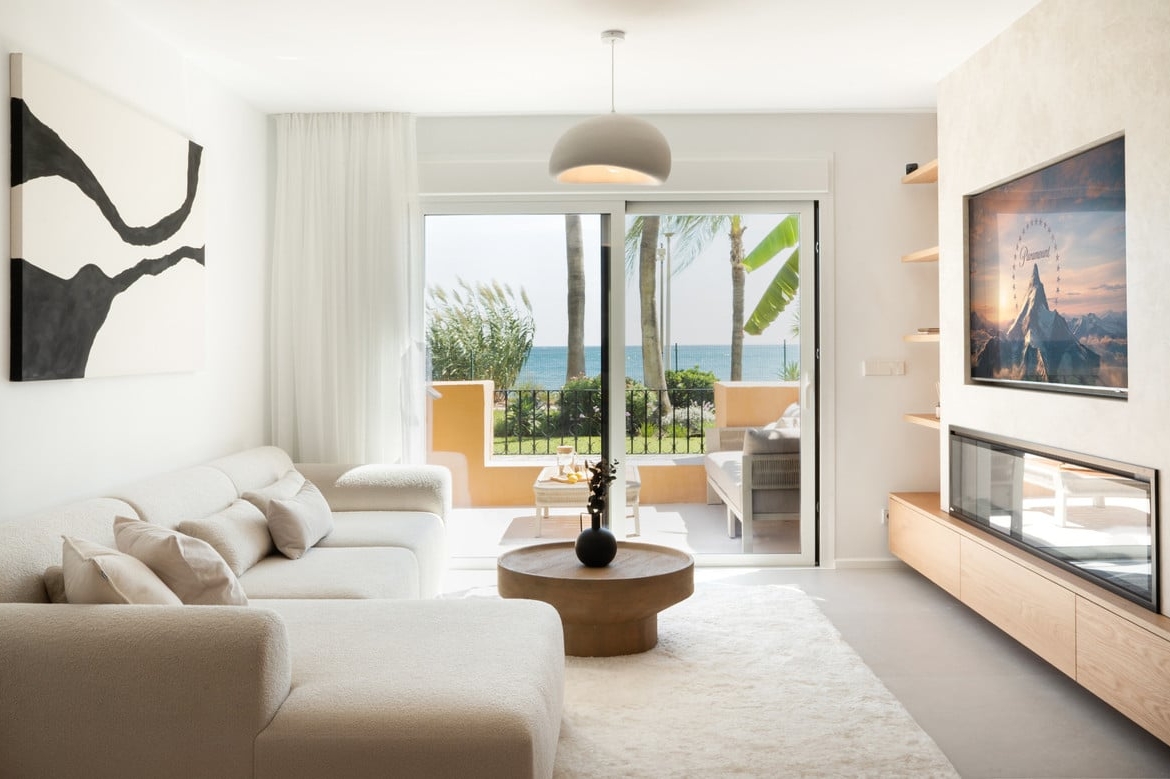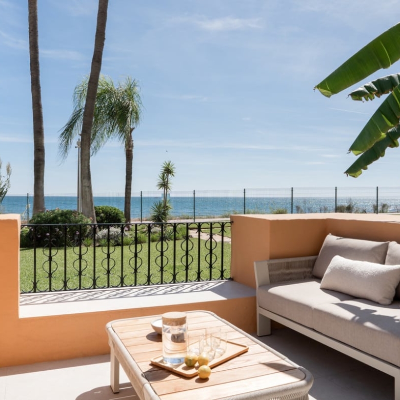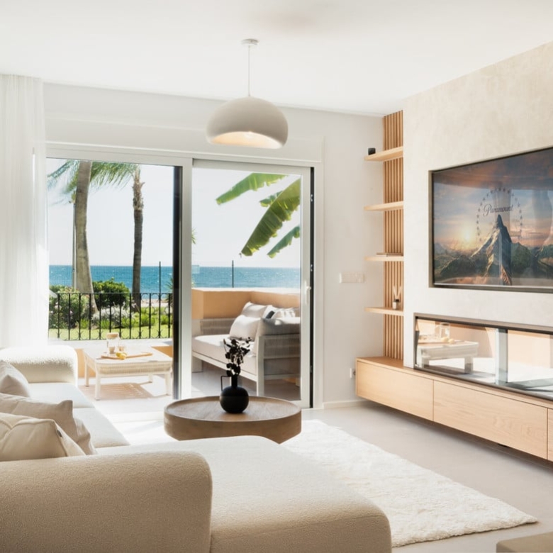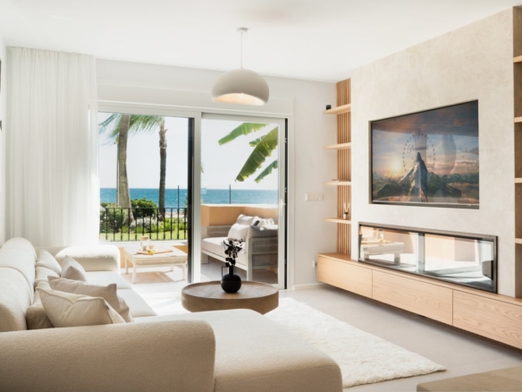 Nestled in a prestigious beachfront urbanization in Estepona, walking distance to the port, this luxurious fully renovated apartment offers an unparalleled living experience on the Costa del Sol. With a built area of 114 m2, this property is a perfect blend of comfort and style, featuring three spacious bedrooms and two well-appointed bathrooms, one of which en-suite.