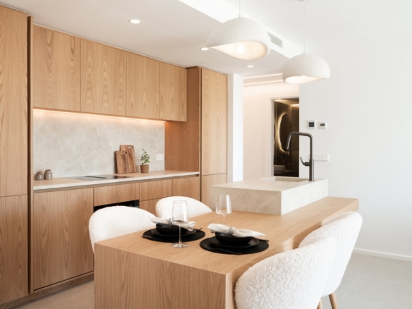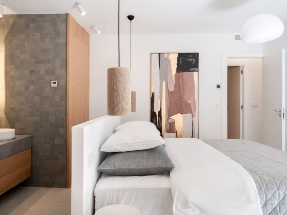 Outdoor living is a delight with 31,65m2 divided between 3 private uncovered terraces all offering stunning unobstructed sea views. The large communal pool and garden provide a tranquil setting for relaxation and leisure. The apartment’s location is ideal for those seeking a vibrant lifestyle, with amenities, transport links, shops, schools, and the beach all within close proximity. The property is also conveniently located near the port, town centre and several golf courses.