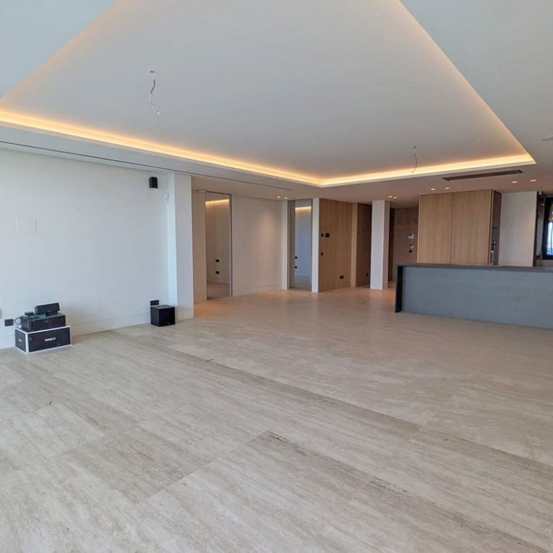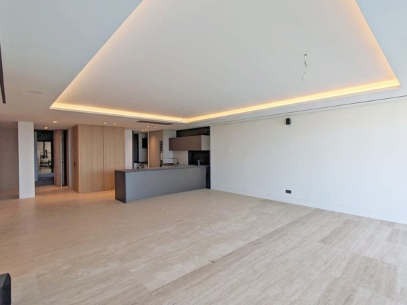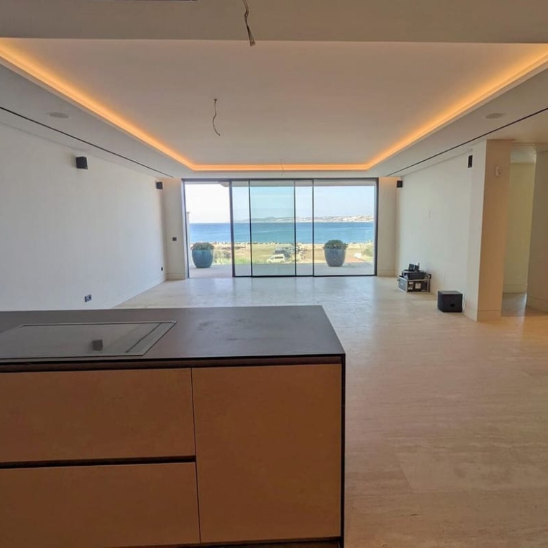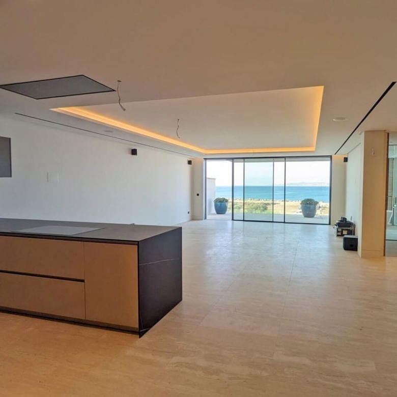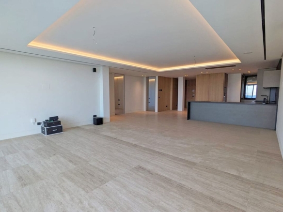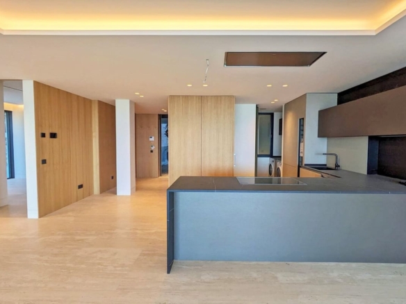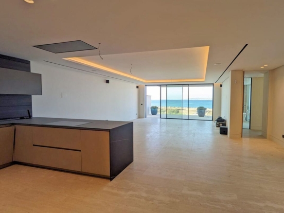 Luxurious three bedroom apartment for sale in this exclusive seafront resort offers a contemporary design, ample interior spaces with views out into the Mediterranean through enormous windows, and extensive terraces with private pools. The use of high-quality materials and cutting-edge technology make this development a real gem. All the homes come with at least two large garage spaces and one storeroom.