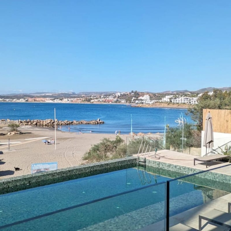 Exclusive seafront apartment located by the popular beach of Playa del Cristo, a beautiful bay in Estepona on the Costa del Sol.