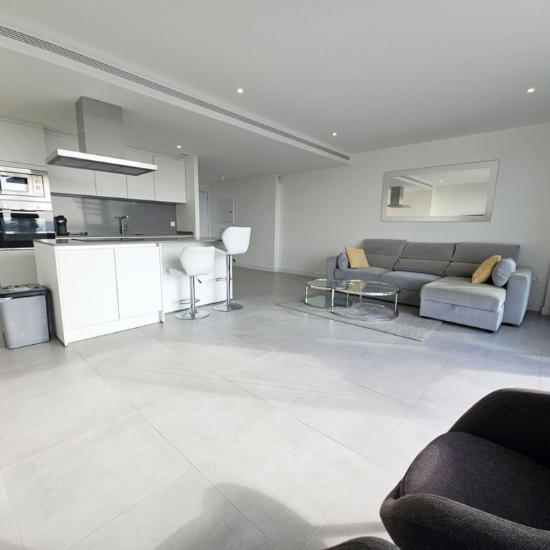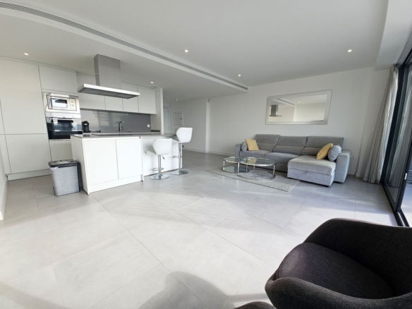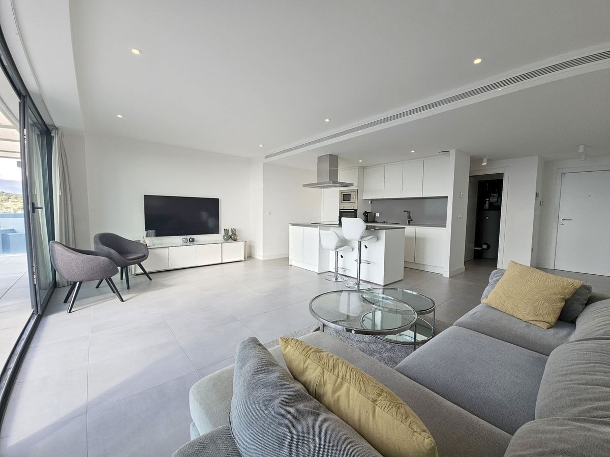 Seamless indoor-Outdoor Flow: Floor-to-ceiling windows open onto a generous terrace, flooding the home with natural light and offering stunning sea views.
