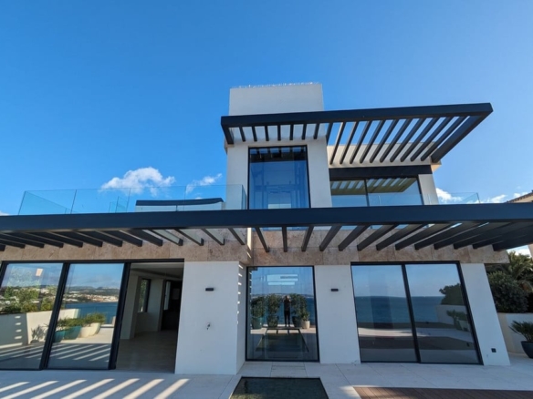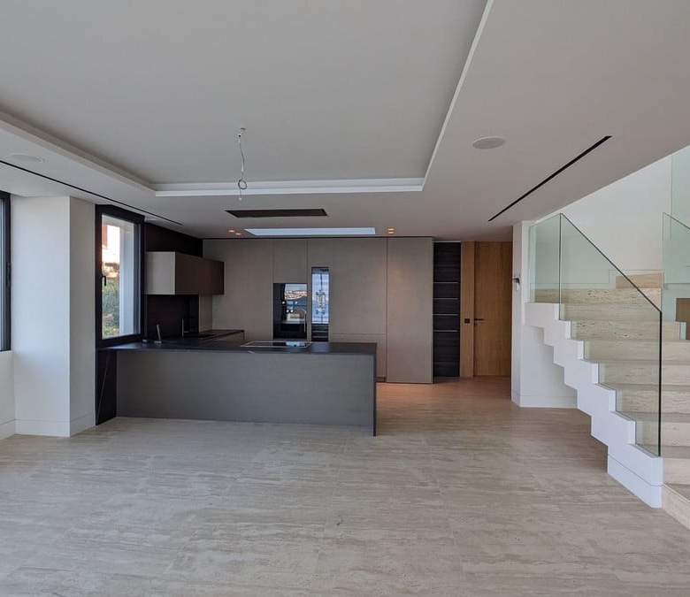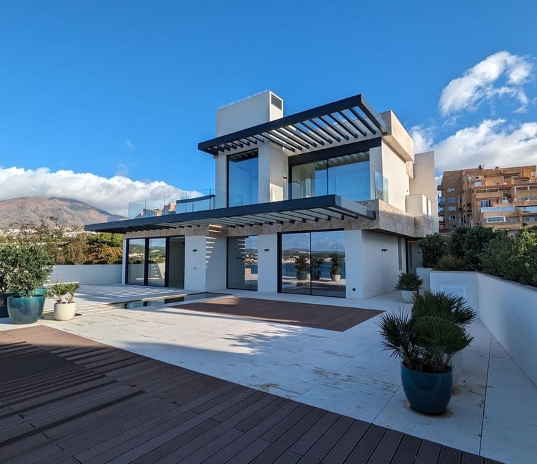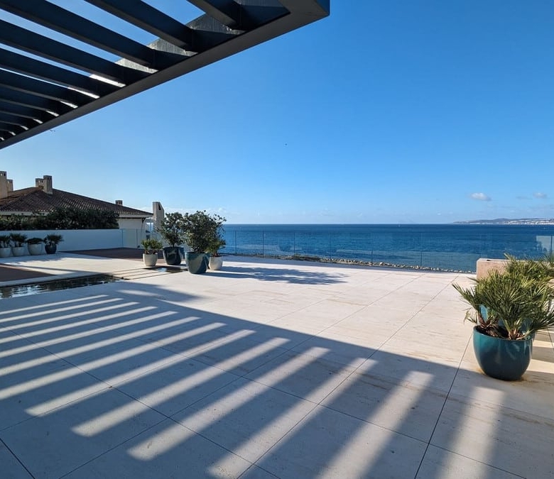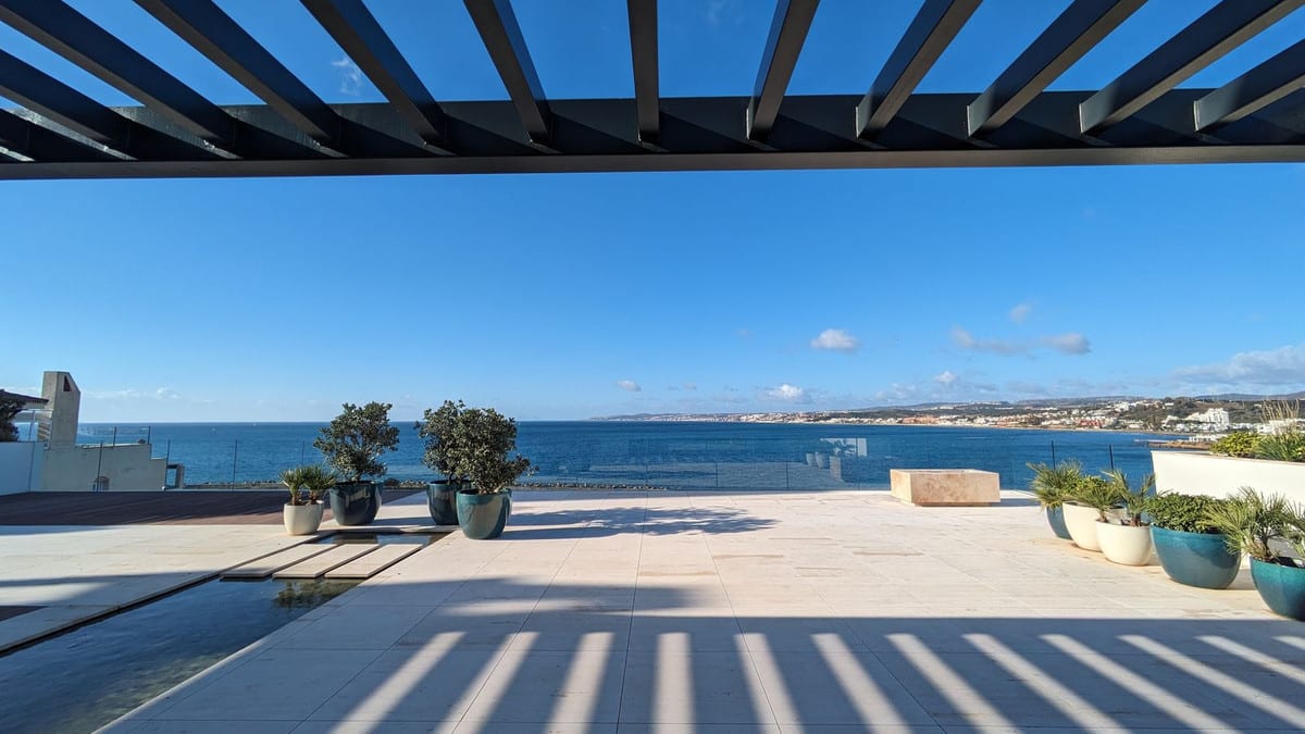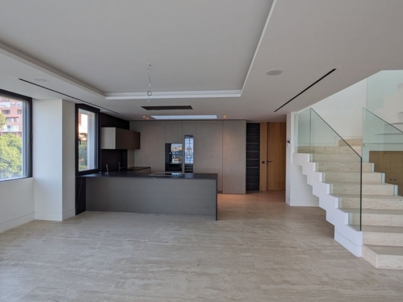 Luxurious three bedroom penthouse duplex for sale in this exclusive seafront resort offers a contemporary design, ample interior spaces with views out into the Mediterranean through enormous windows, and extensive terraces with private pools. The use of high-quality materials and cutting-edge technology make this development a real gem. All the homes come with at least two large garage spaces and one storeroom.