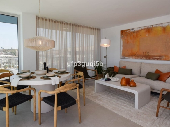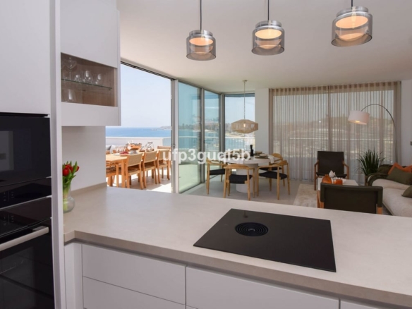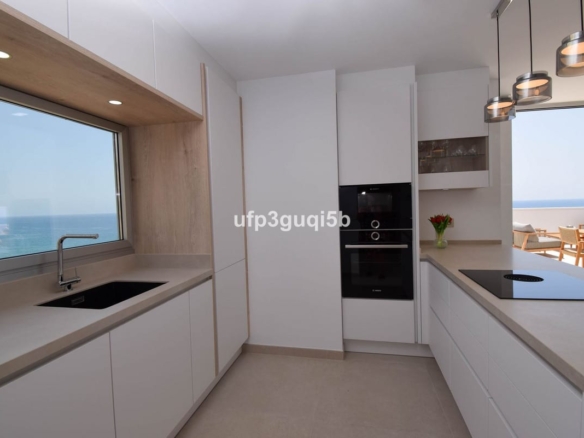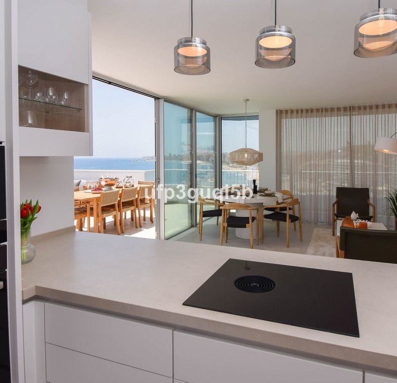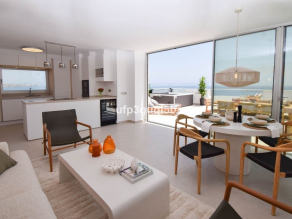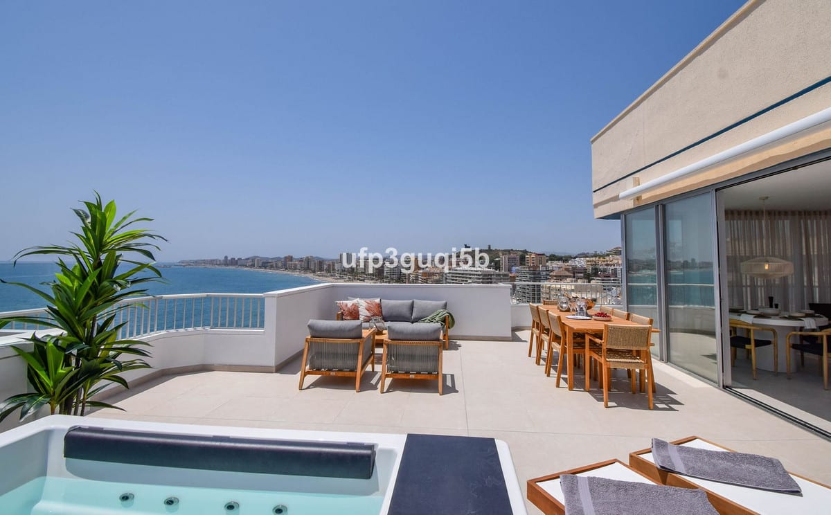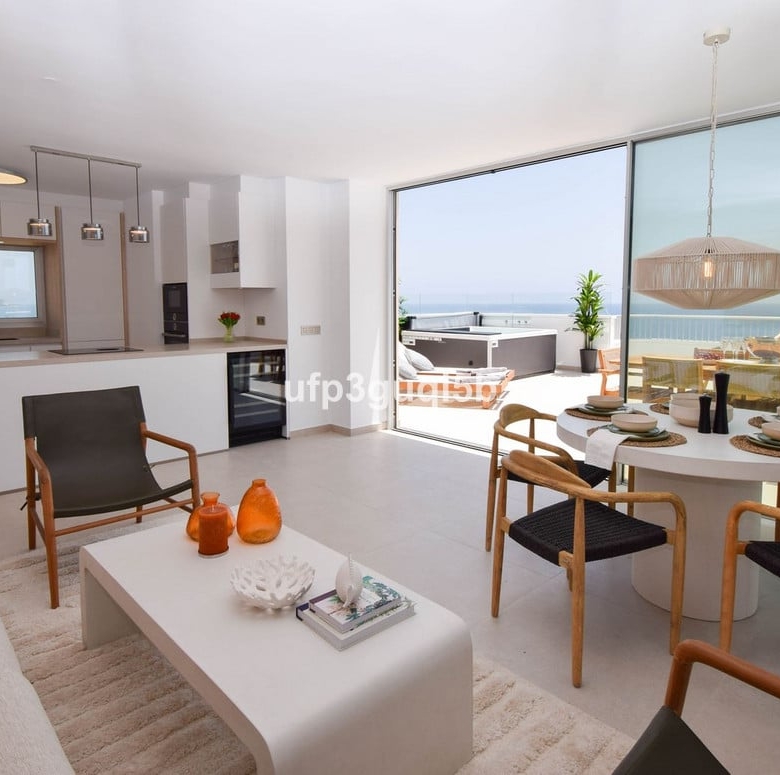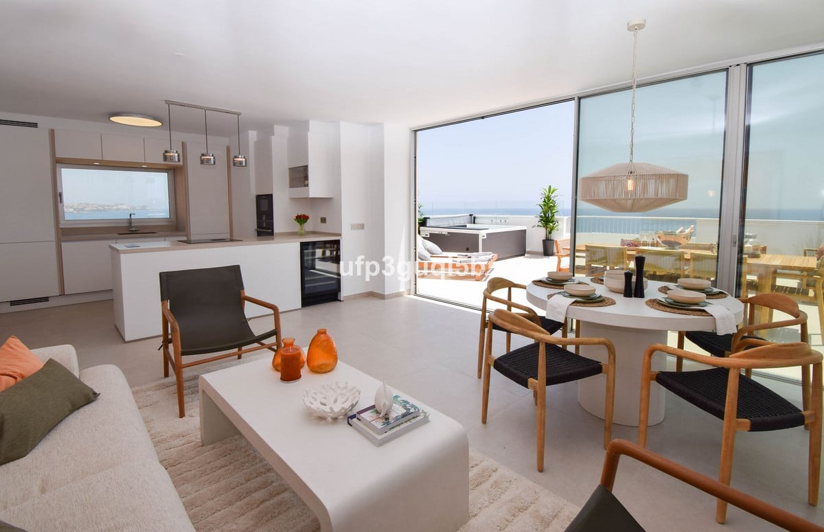 Enjoy an open floor plan where the living room, kitchen, and terrace blend seamlessly with large glass windows, providing stunning panoramic views of the sea, the city of Fuengirola, and the majestic Mijas mountains. From both the living room and the master bedroom, you step out onto the large terrace – your private oasis with space for dining, relaxing on the sofa, sunbathing, and enjoying a refreshing SPA.
