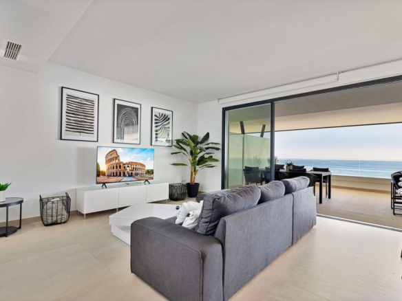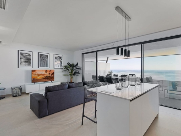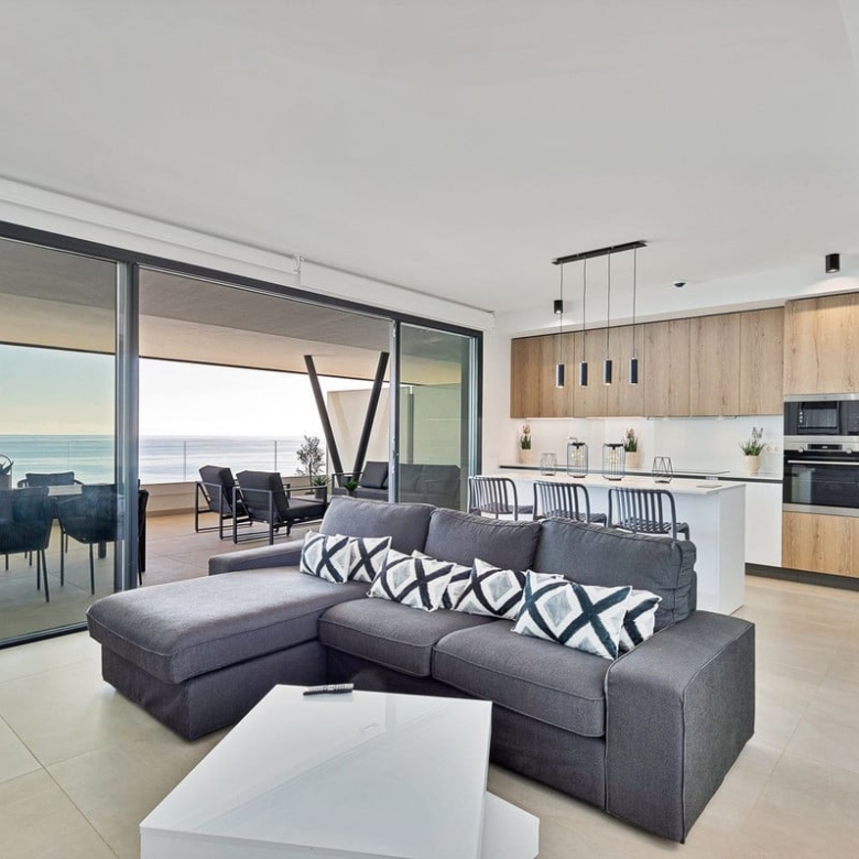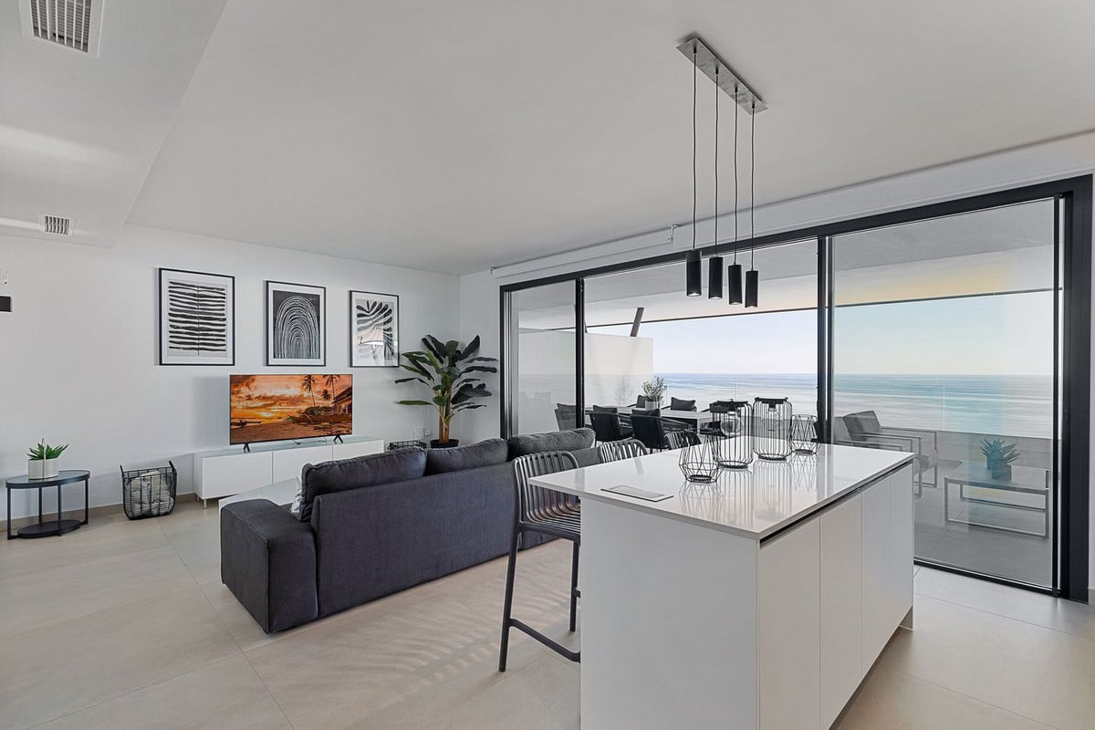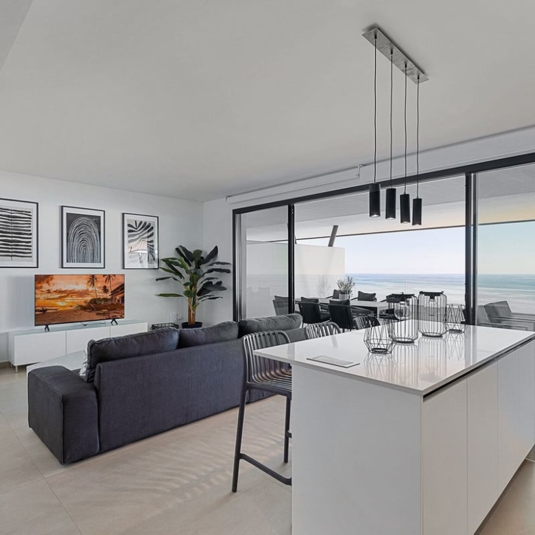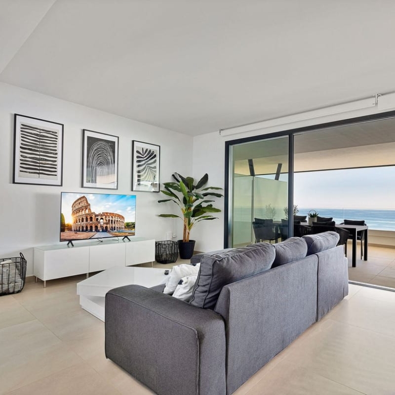 if you are looking for a stylish apartment made with the highest quality materials, step inside! The location is unbeatable and the south-facing balconies offer views of the sea far into the horizon. The fully equipped kitchen opens onto the living room and terrace.