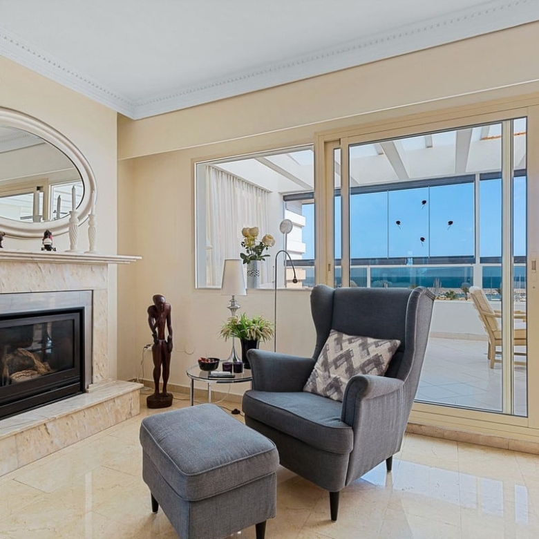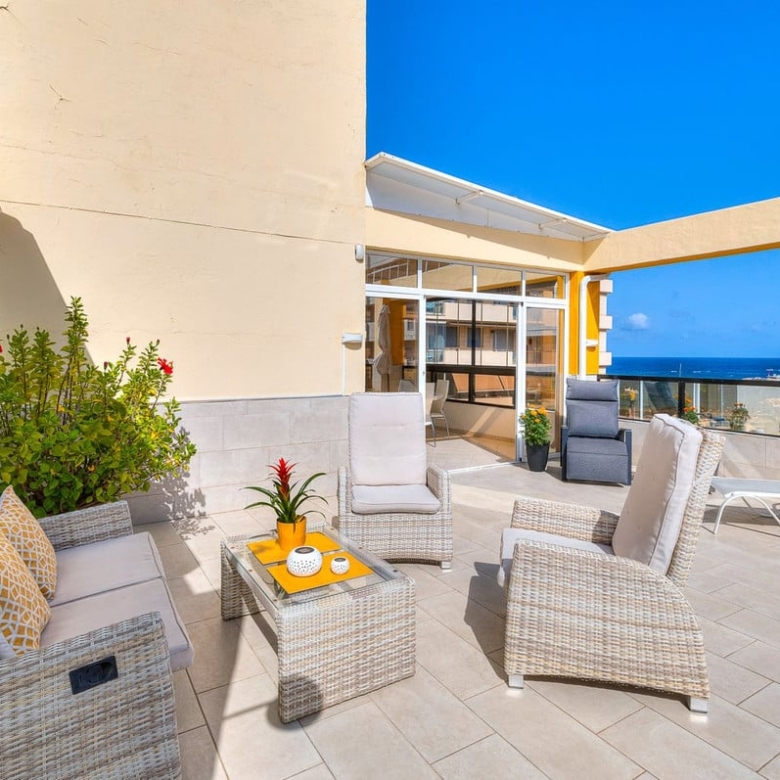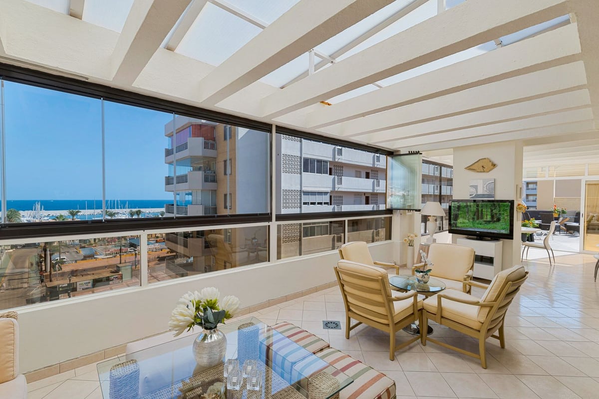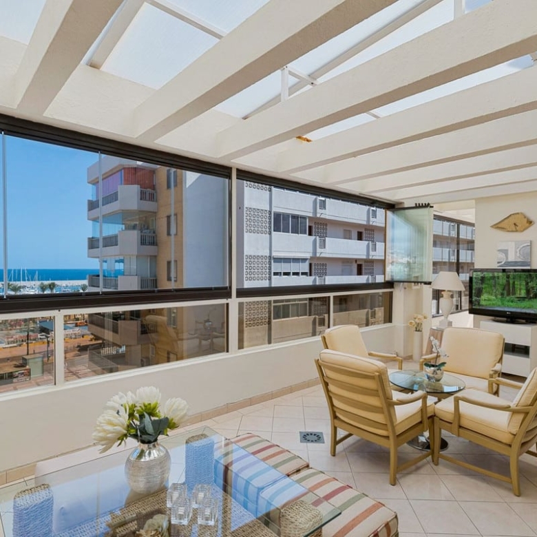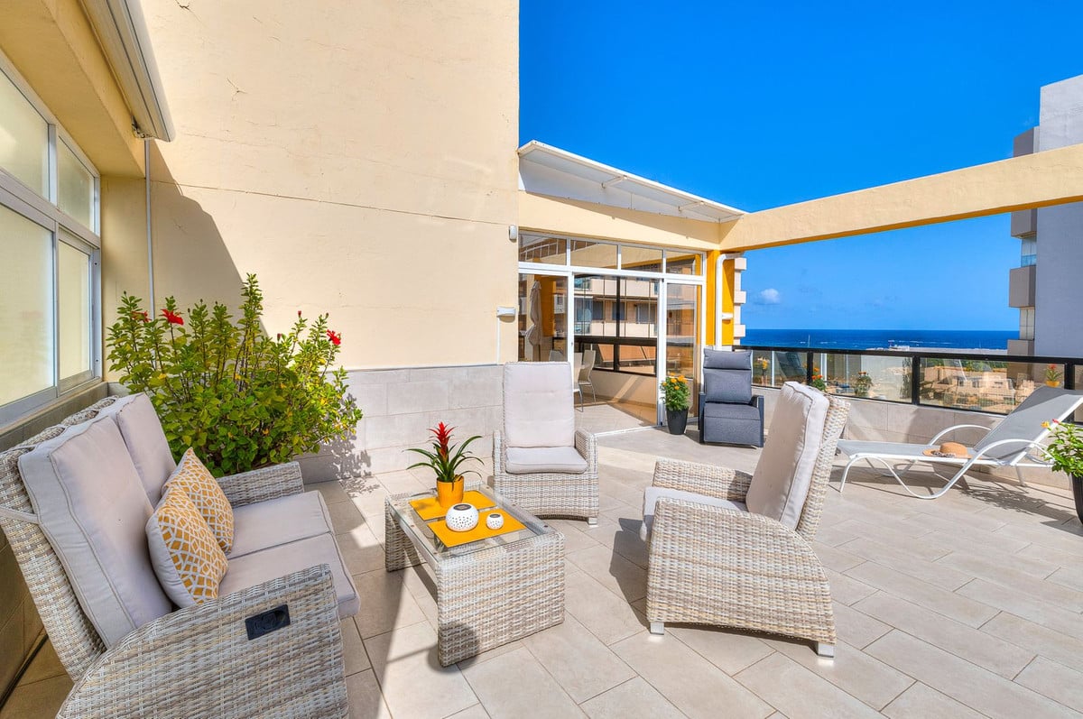The penthouse has a built area of 122 m2 with private access to a terrace of 140 m2, partly under roof, and with beautiful views towards the port of Fuengirola.