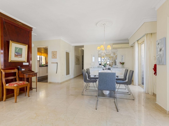 The property is in very good condition and has been continuously renovated over the years. it is very spacious with good sized rooms. The kitchen is fully equipped with double fridges and freezers, wine cooler and granite worktop. The combined living room and dining room has a gas fireplace. There are three bedrooms. Master bedroom has a large walk-in closet and one of the other bedrooms also has plenty of closet space. The two bathrooms were renovated in 2018 and have underfloor heating. There is also a separate laundry room with washer and dryer and space for more storage.