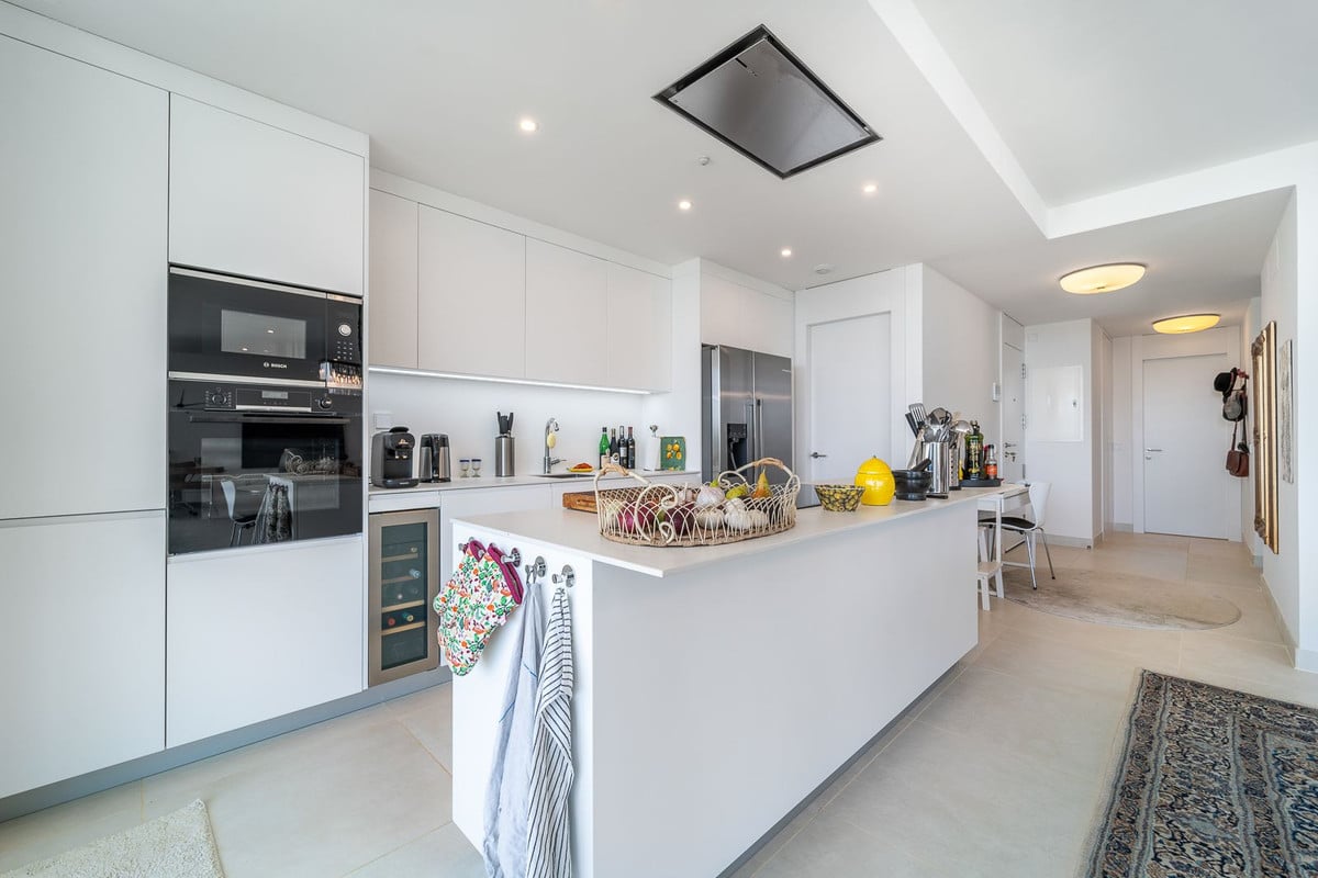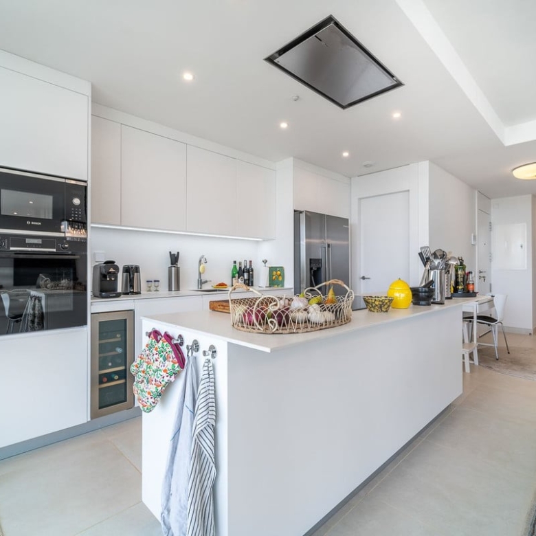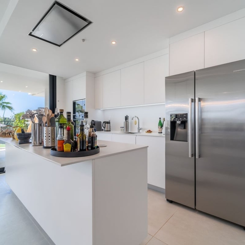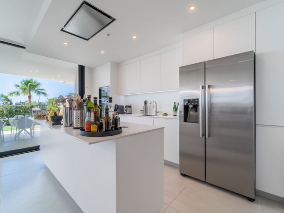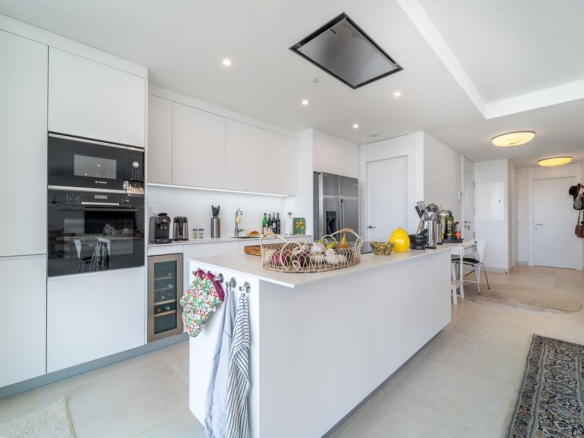 Experience ultimate comfort with hydraulic underfloor heating and air conditioning throughout the unit, ensuring a perfect climate year-round. The fully equipped kitchen is a chef’s dream, complete with an American fridge, kitchen island, and wine fridge, making meal preparation a pleasure.