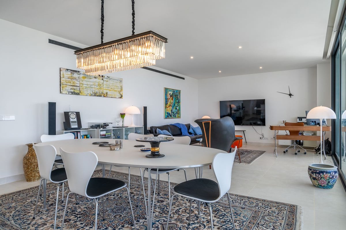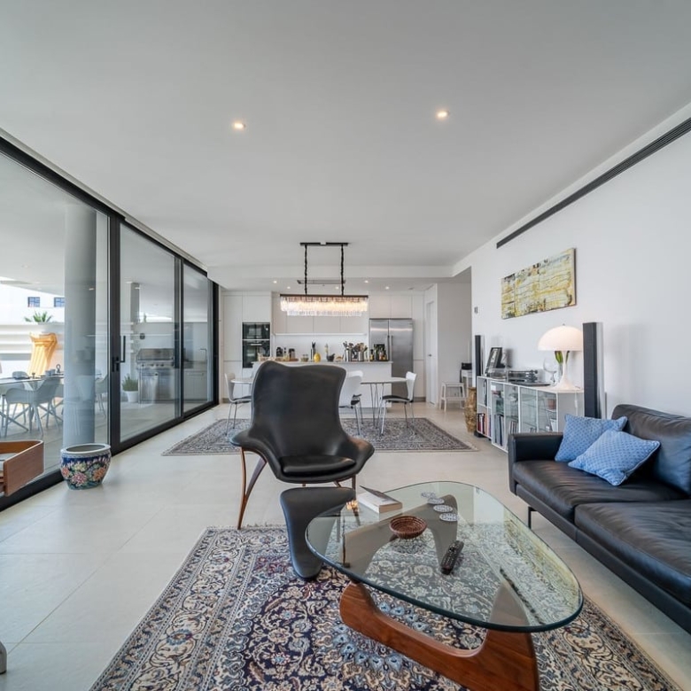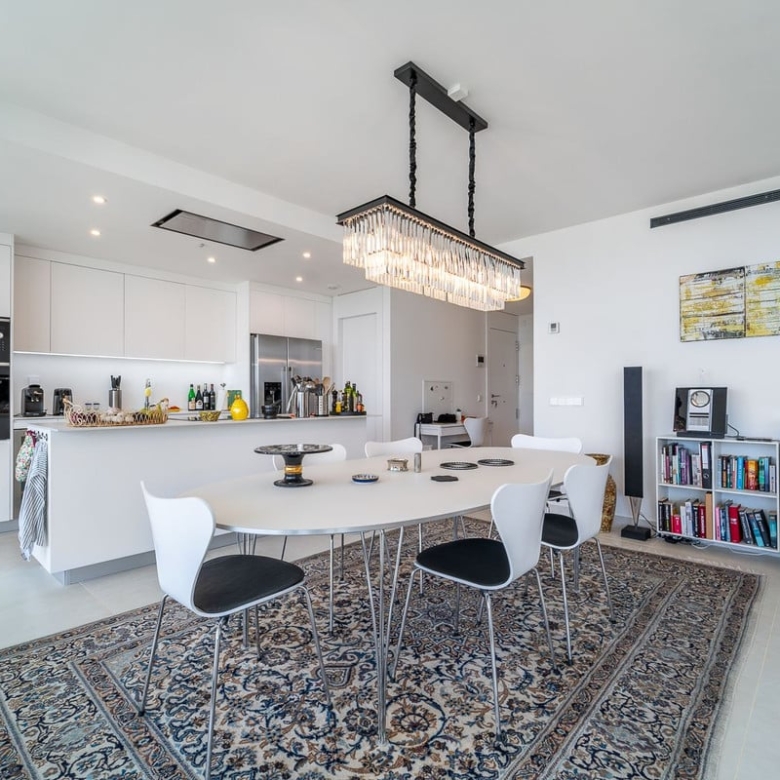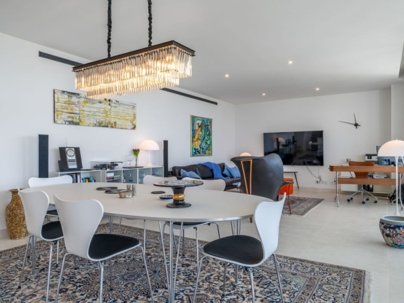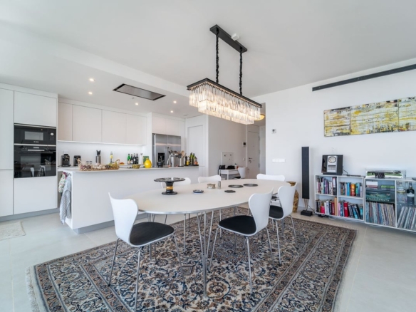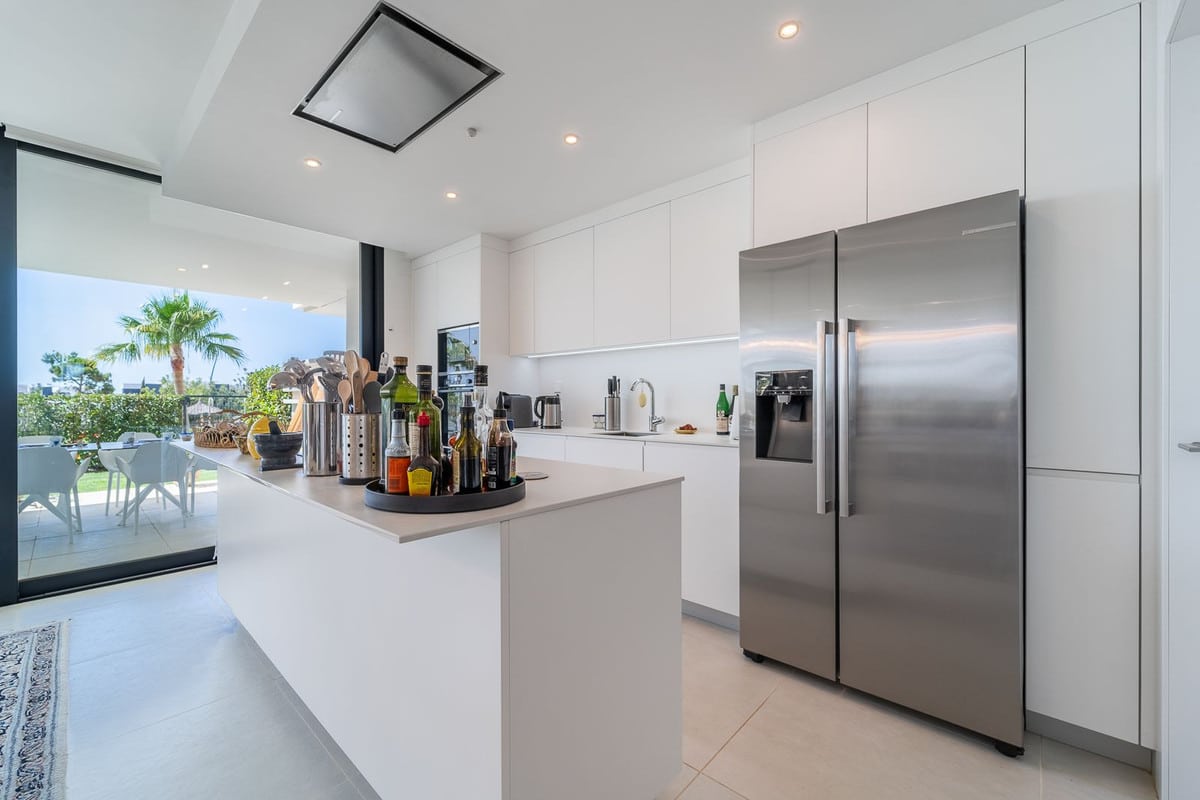 Experience ultimate comfort with hydraulic underfloor heating and air conditioning throughout the unit, ensuring a perfect climate year-round. The fully equipped kitchen is a chef’s dream, complete with an American fridge, kitchen island, and wine fridge, making meal preparation a pleasure.