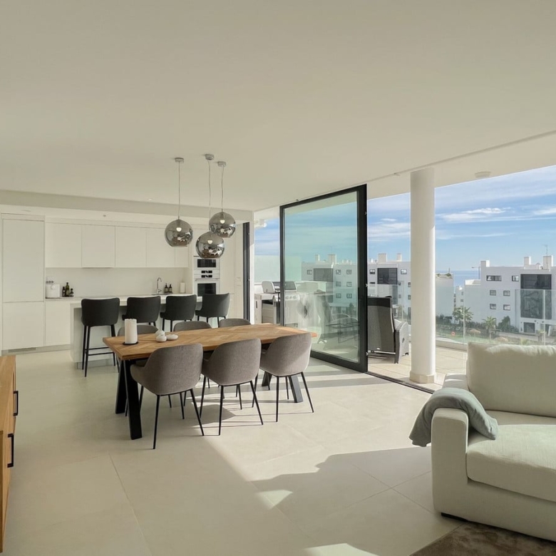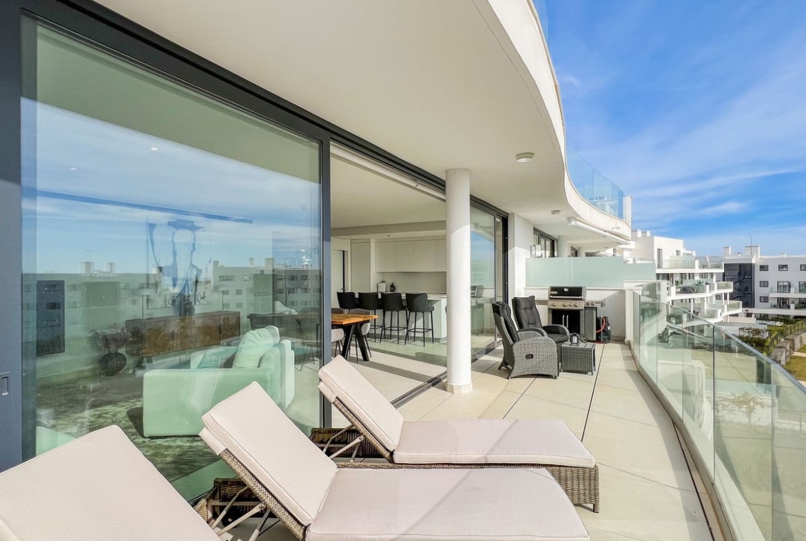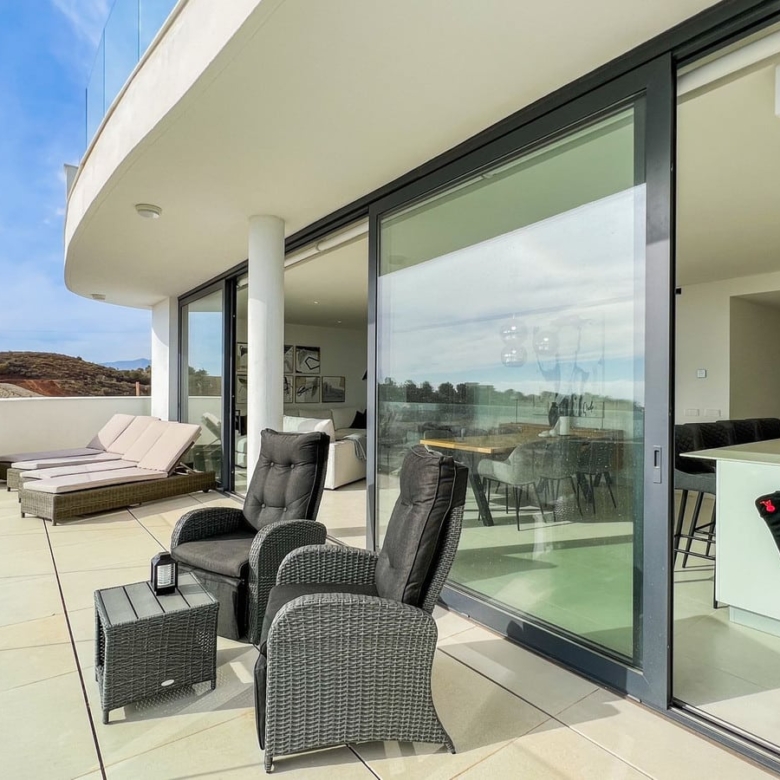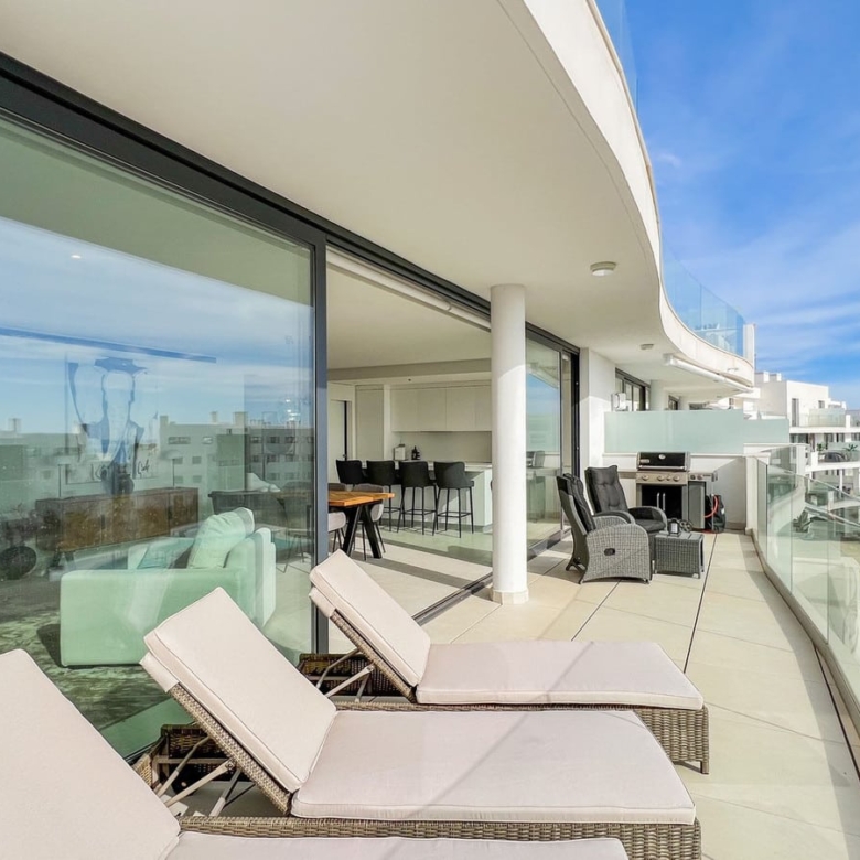 This new, modern apartment is located in the gated community of Higueron West – a luxurious residential community, with its own spa and sports facilities including tennis- and padel courts, a 5-star hotel, 9 restaurants, swimming pools, a co-working space, concierge services, and much much more. There is also a private beach club with 2 restaurants and a pool belonging to the community. it’s easy to get to with the shuttle service offered.