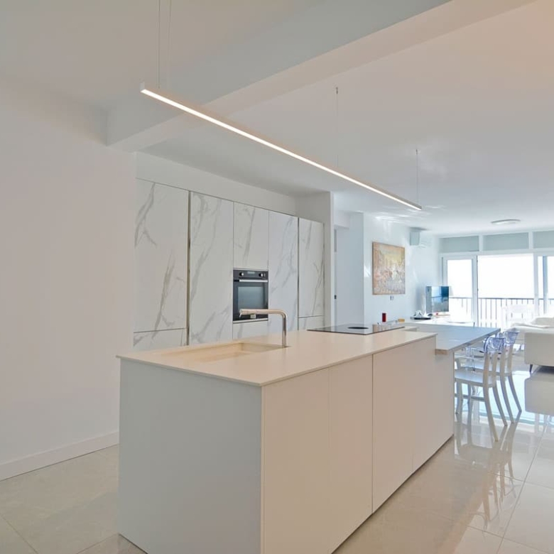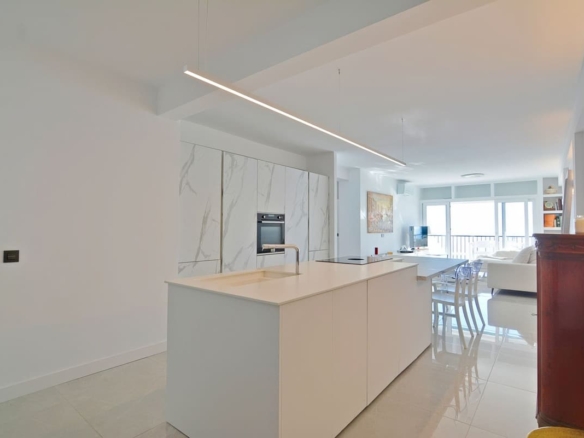 The kitchen is the heart of the home and this is no exception. With a modern and functional design, you can prepare your favorite dishes while enjoying the sea views. The living room is spacious and cozy, ideal for family gatherings or friends.