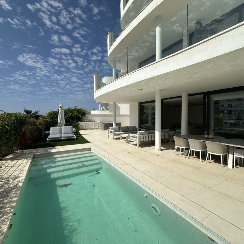A wrap around terrace offering sun all day long, garden area and private pool.