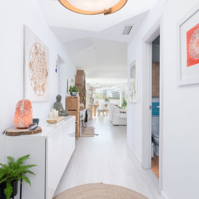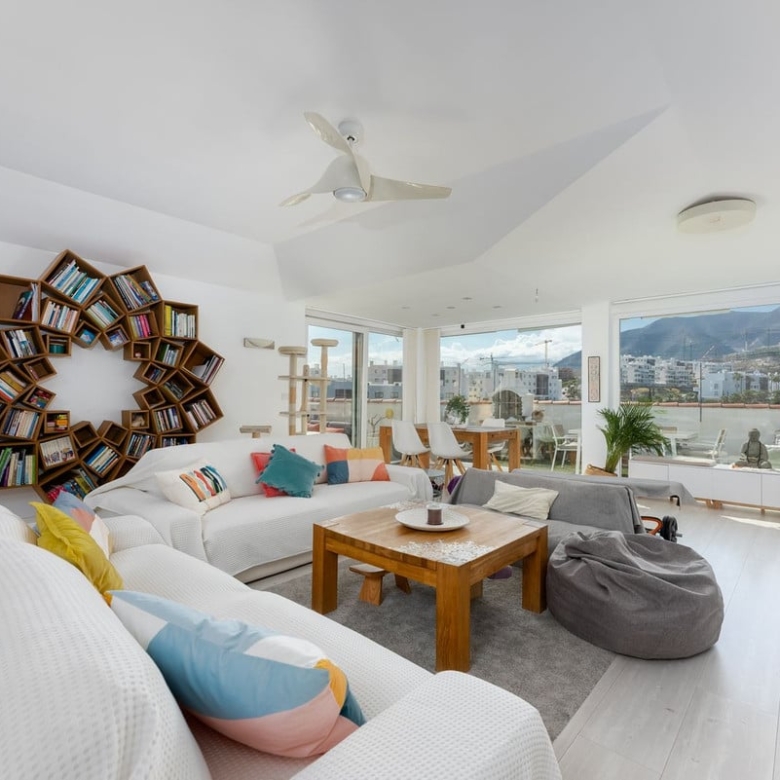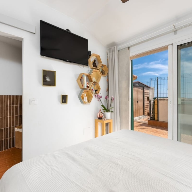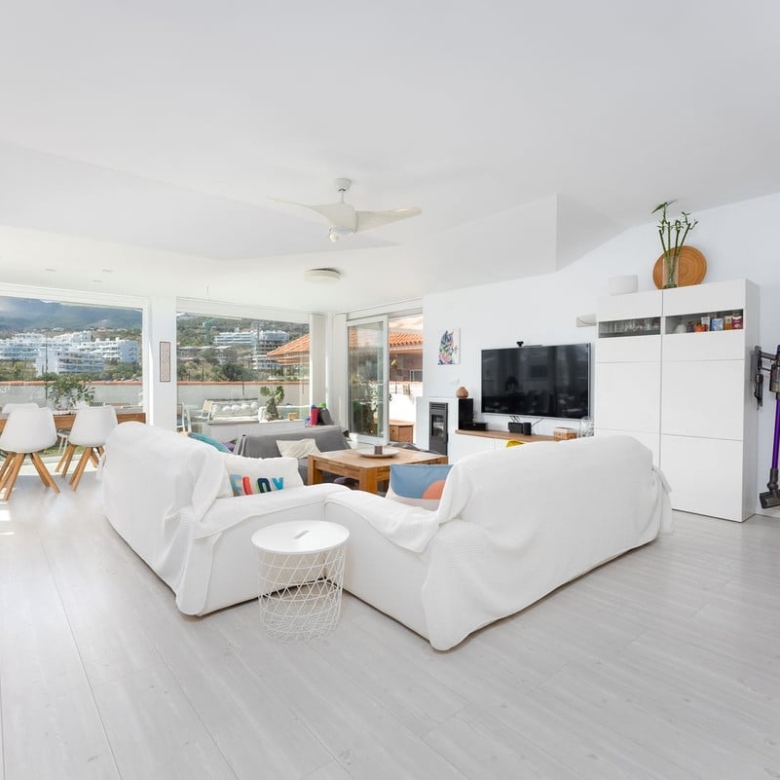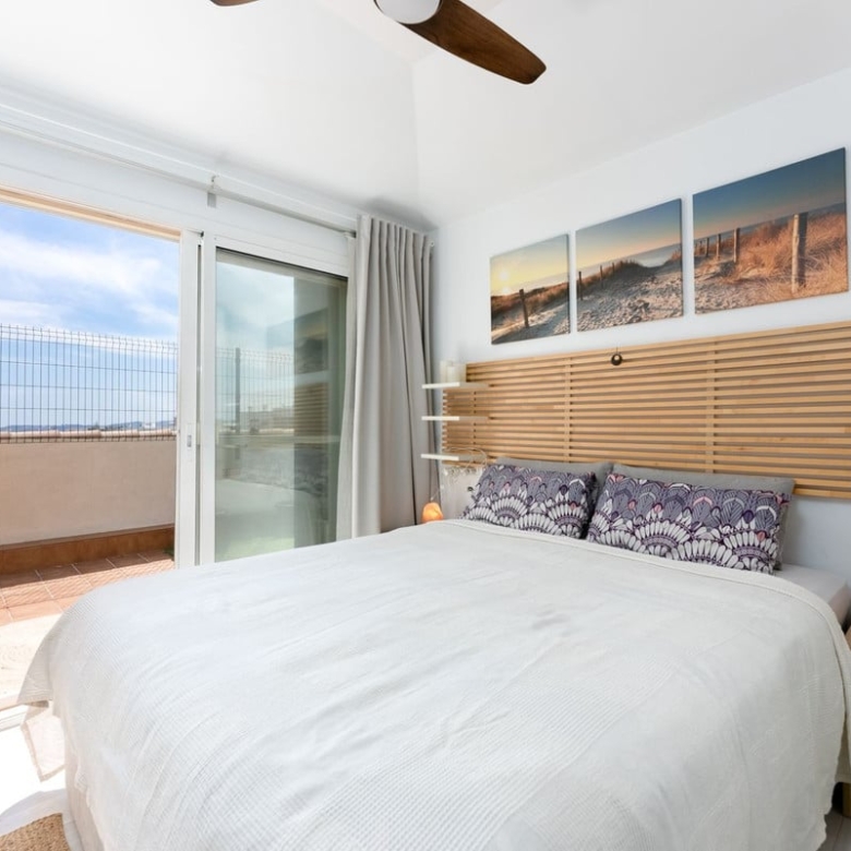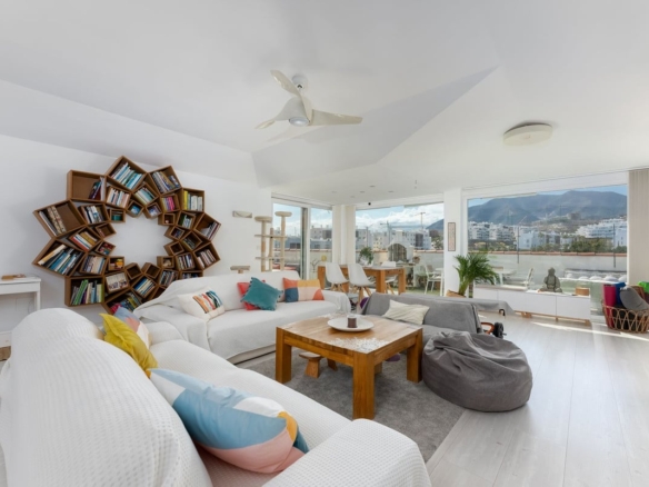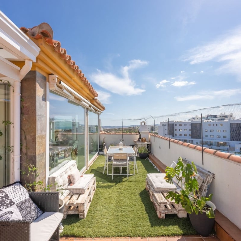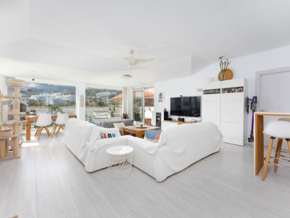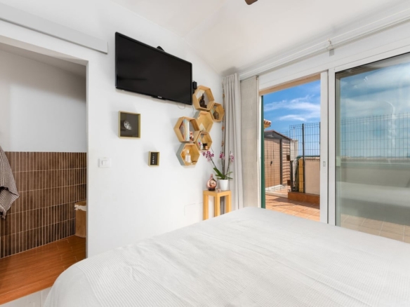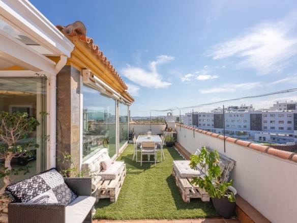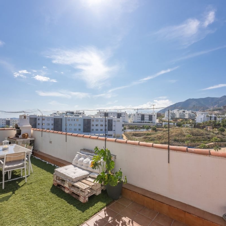 Refurbished modern penthouse, south-south/west orientation, located in the exclusive urbanization Reserva del Higueron. Consits of hall entrance, 3 bedrooms and 2 bathrooms, wooden floors throughtout all the apartment, spacious living-dining room with large glass windows, open plan kitchen fully furnished and equipped with electricial appliances. All bedrooms with fitted wardrobes and access to the terrace. Main bedroom with ensuite bathroom and walk-in closet. 136m2 of terrace with panaromic views of the Mediterranean sea and Fuengirola Bay. includes a parking space and storage room.
