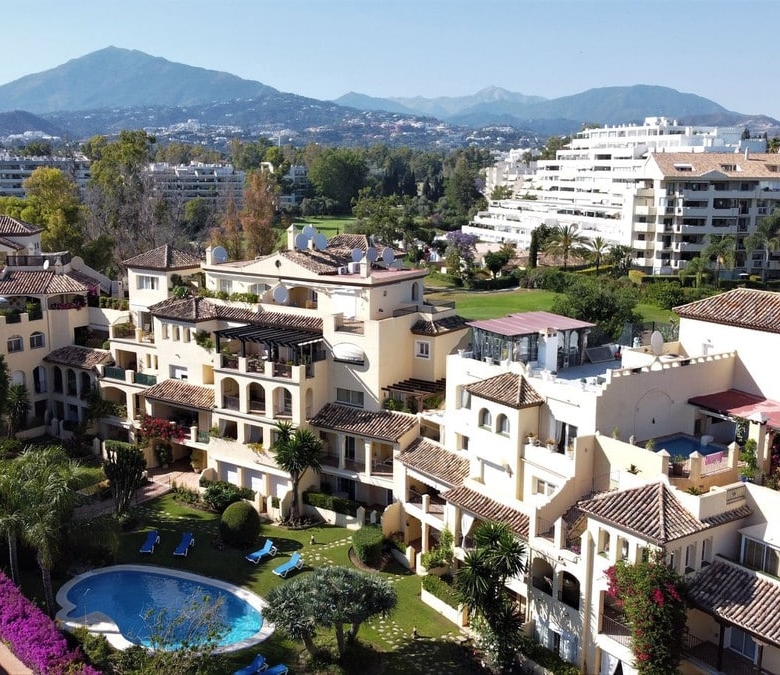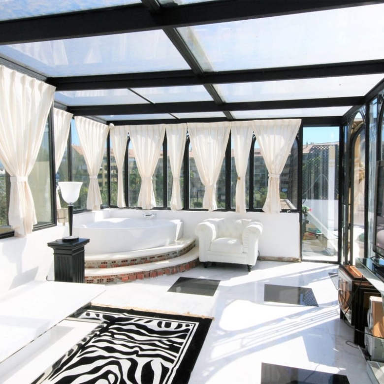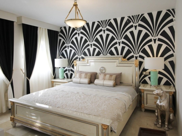 Situated frontline golf in the highly desirable area of Guadalmina Alta lies what is possible the only Art Deco apartment in the whole of Andalucia. This utterly stunning duplex penthouse is located in small quiet complex of apartments away from any road noise and yet just a short distance away from the town of San Pedro and the many restaurants and amenities of Guadalmina. Upon entering the property you immediately get a sense of space and opulence, due to both the distribution and the incredible decor and furnishings throughout the penthouse. On the main level you have an enormous living room with a separate dining area off to the left and a further sitting area off the living room to the right which over looks the Guadalmina golf course. The exquisite furnishings and decor are unique Art Deco pieces from around the world, many of which have great provenance and have come from America via auction houses in Paris, London and Rome. The thought and attention to detail that has gone into this Art Deco property is absolutely outstanding and must been seen first hand to be able to truly appreciate in its entirety. As you would expect, the fully fitted kitchen is in keeping with the rest of the house in terms of both quality and design, and that continues of course through into both the large master suite and the second bedroom with it own adjoining bathroom. A staircase leads from the dining area up to an exquisitely designed conservatory/ bedroom suite with jacuzzi, which again enjoys the amazing views out over the golf course. This in turn leads out onto 65m2 solarium with a Jacuzzi, again all this conforming with the elegant Art Deco style.