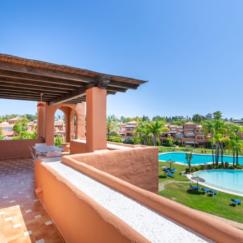 A very large and reformed top floor apartment in an urbanisation that boasts the largest pool in Marbella!