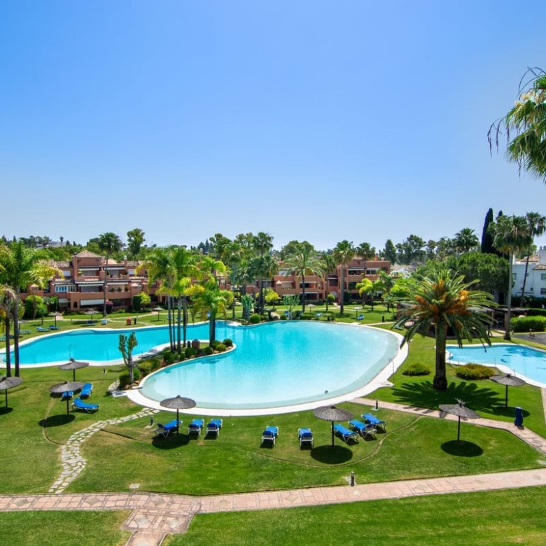 This sprawling complex was built in 1998, on the beachside plot that today would be the envy of any developer. Back then, land was widely available, and the early property developers who sculpted the Costa del Sol focused as much on the exterior communal areas as they did on the interiors of the homes that they were building.