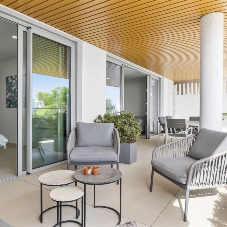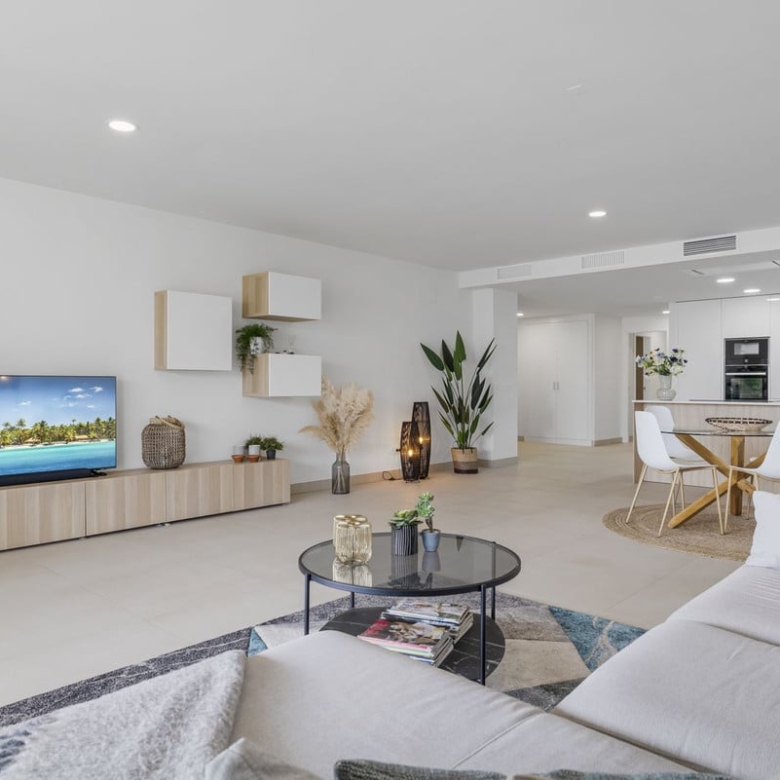 This spacious apartment is located next to the Calanova golf course, from the terrace you look out over the mountains, the golf course and the sea.