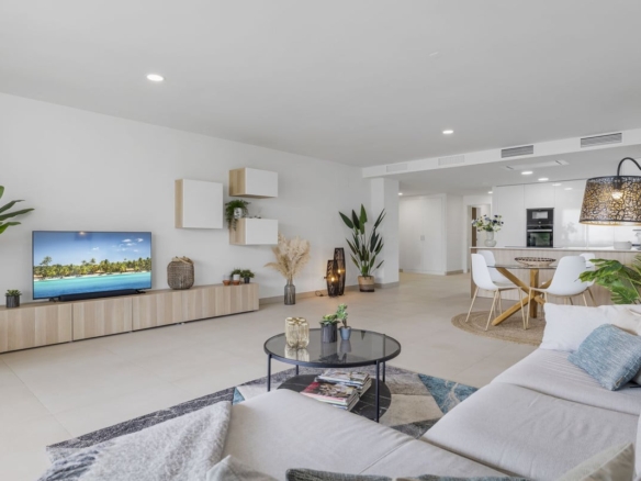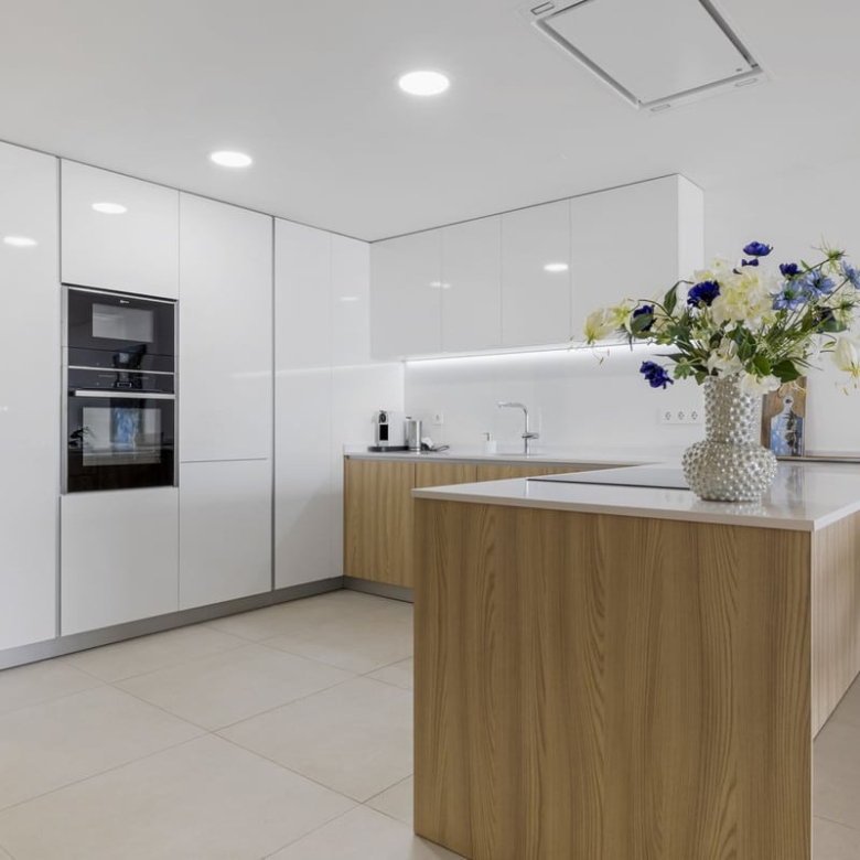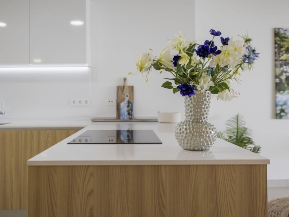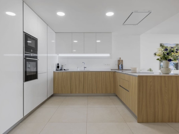 The heart of the house is a beautiful, very spacious living room with an open kitchen. From the living room you also have an amazing sea view. The kitchen is equipped with all necessary appliances, all finished to a high standard. The entire apartment has underfloor heating that is equipped with a heat pump.