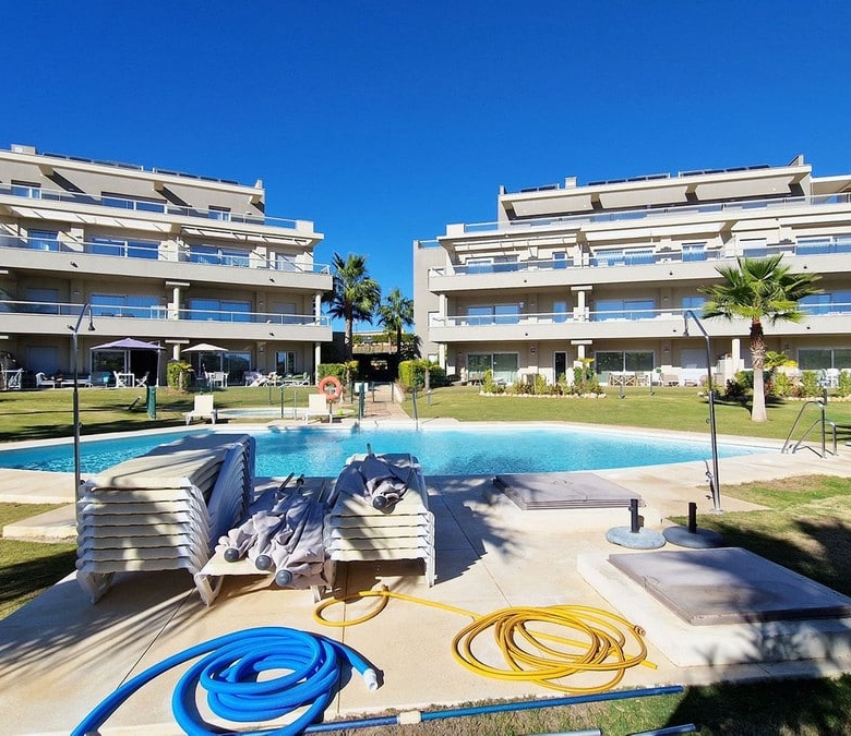 The urbanisation has a closed area and this penthouse has two parkin spaces, one covered and one uncovered. Large community garden areas with swimming pool for adults and children.